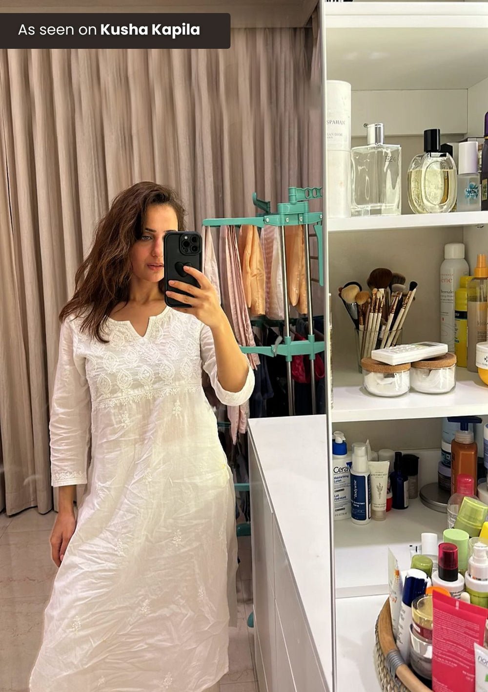 HOC Cotton Chikankari Printed Women's Long Kurta - White