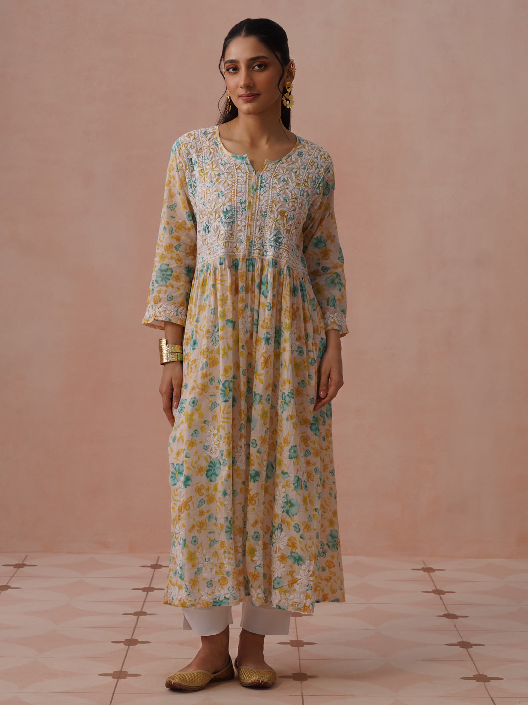 Shamita Shetty in Juri Chikankari Muslin Kurta