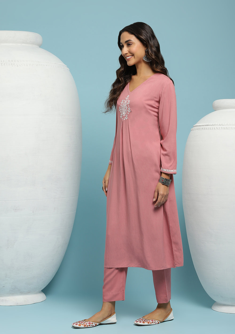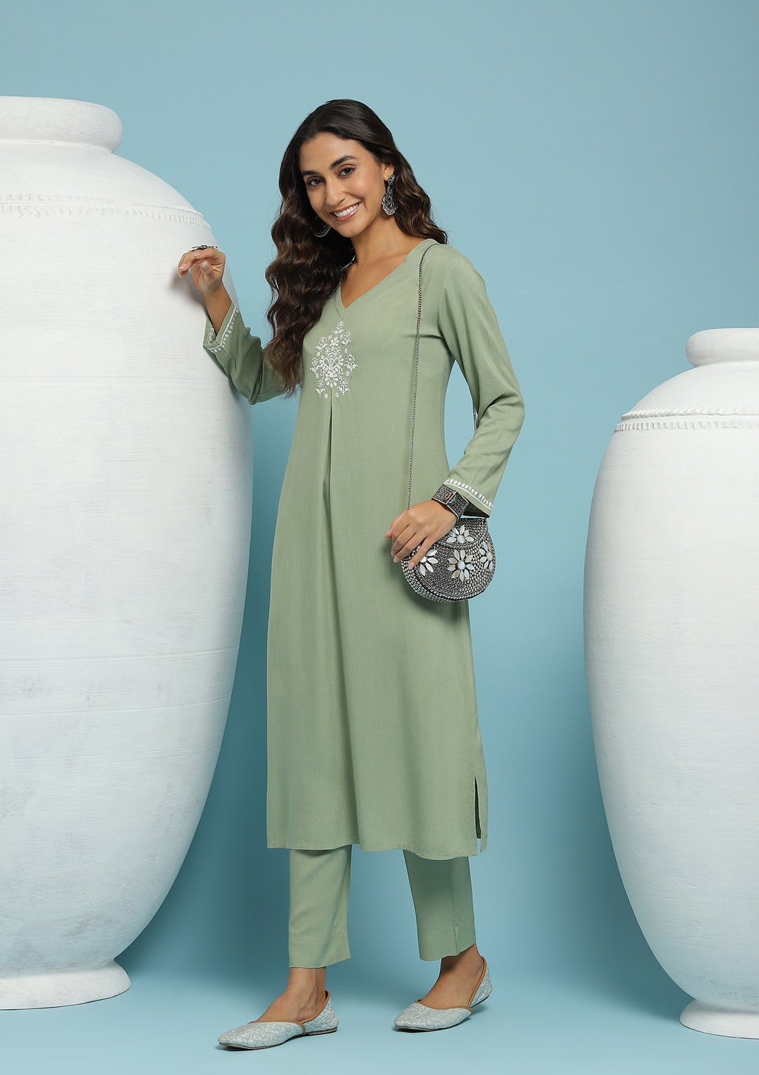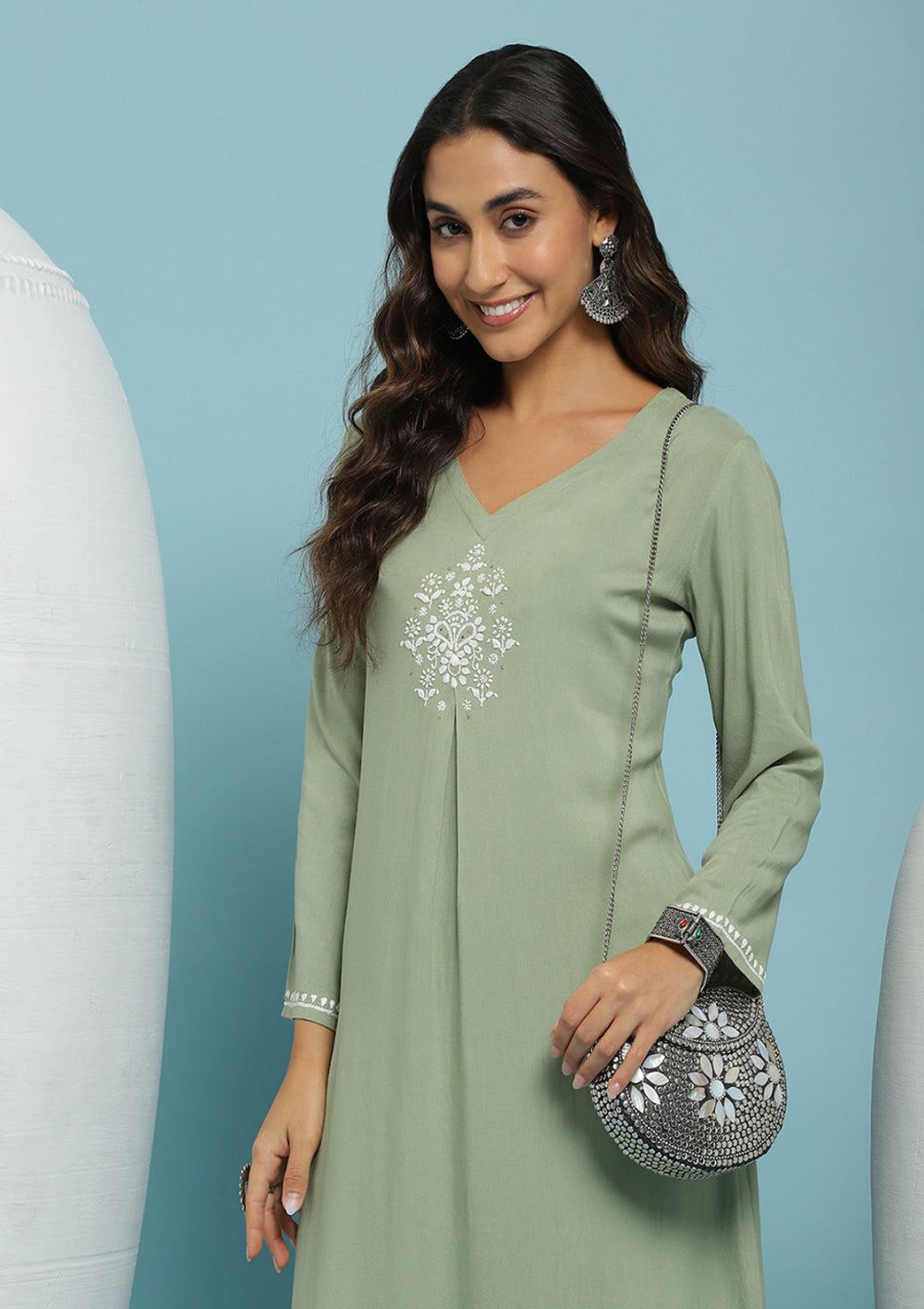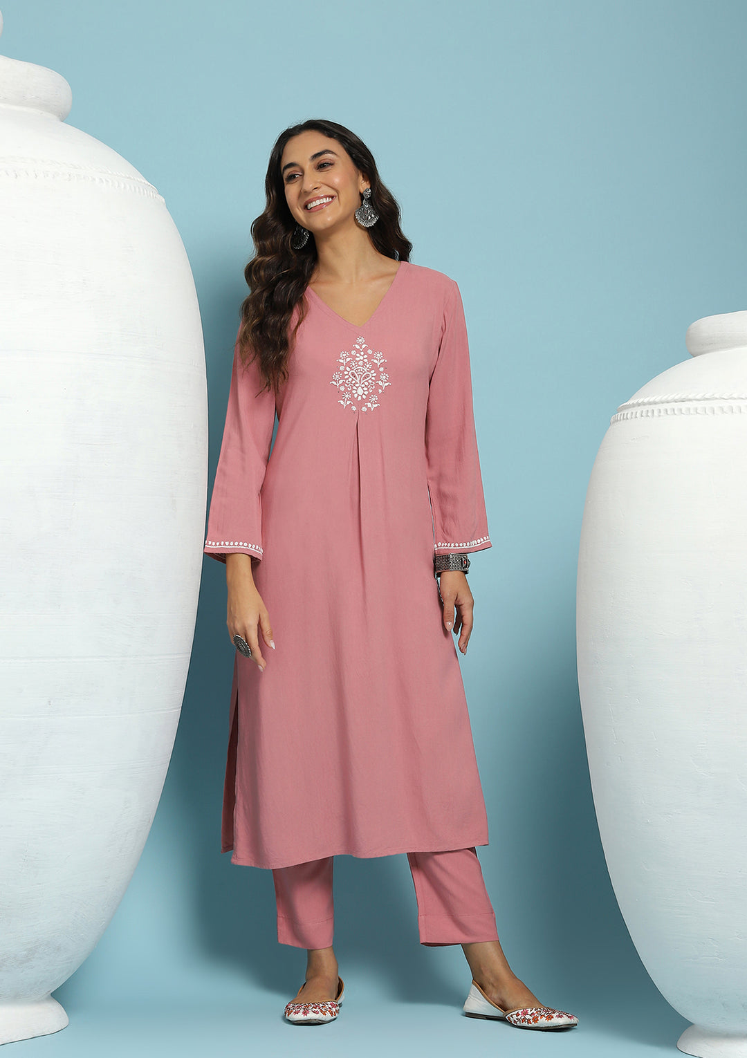 HOC Karima Chikankari Rayon Straight Kurta Set