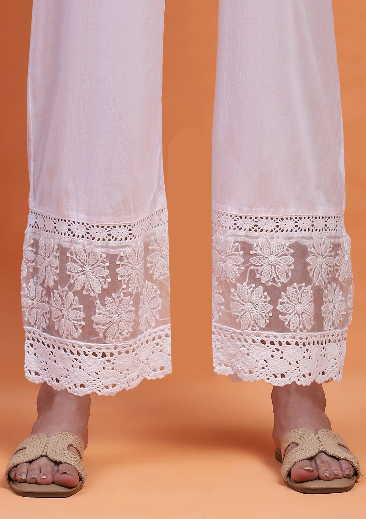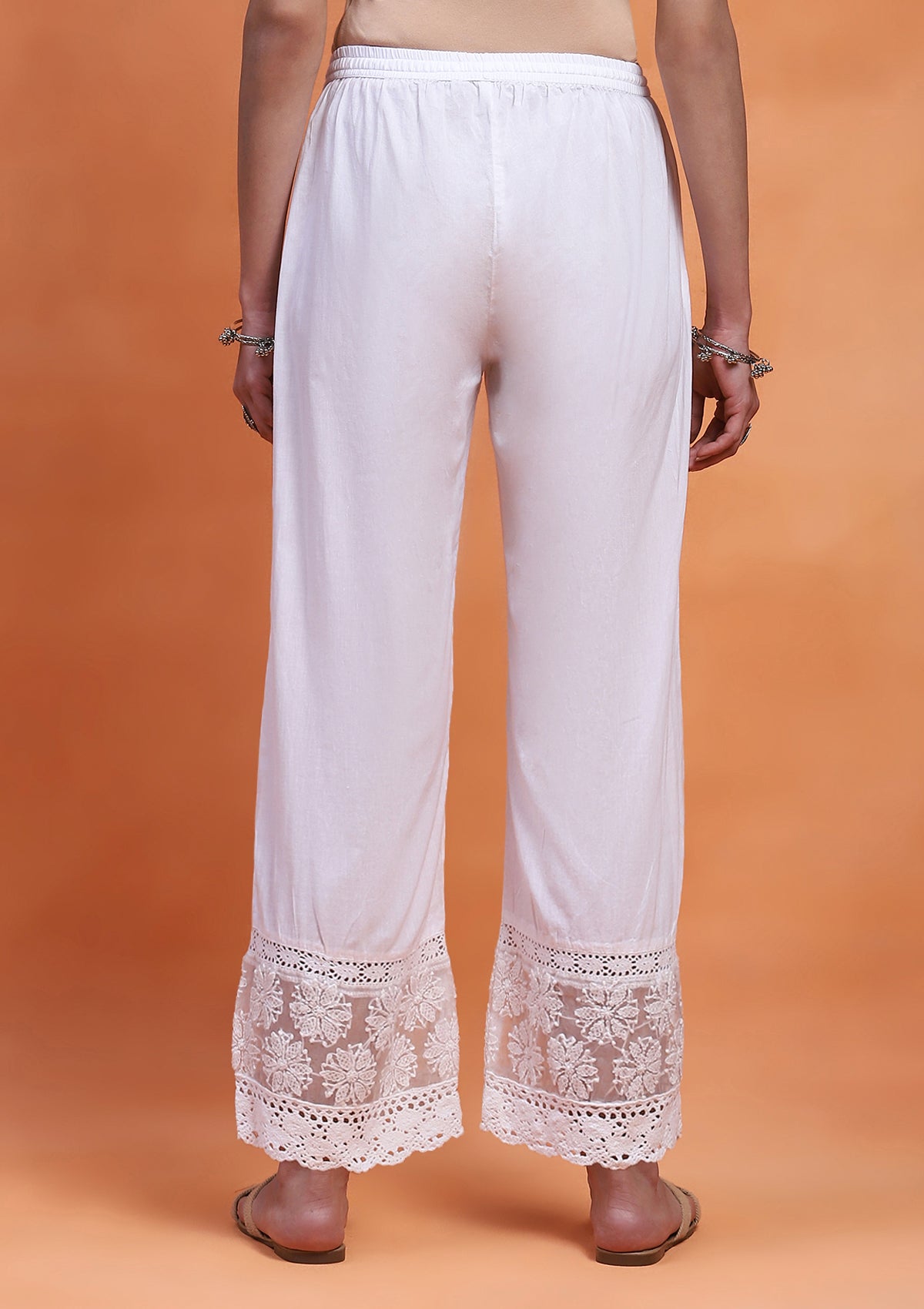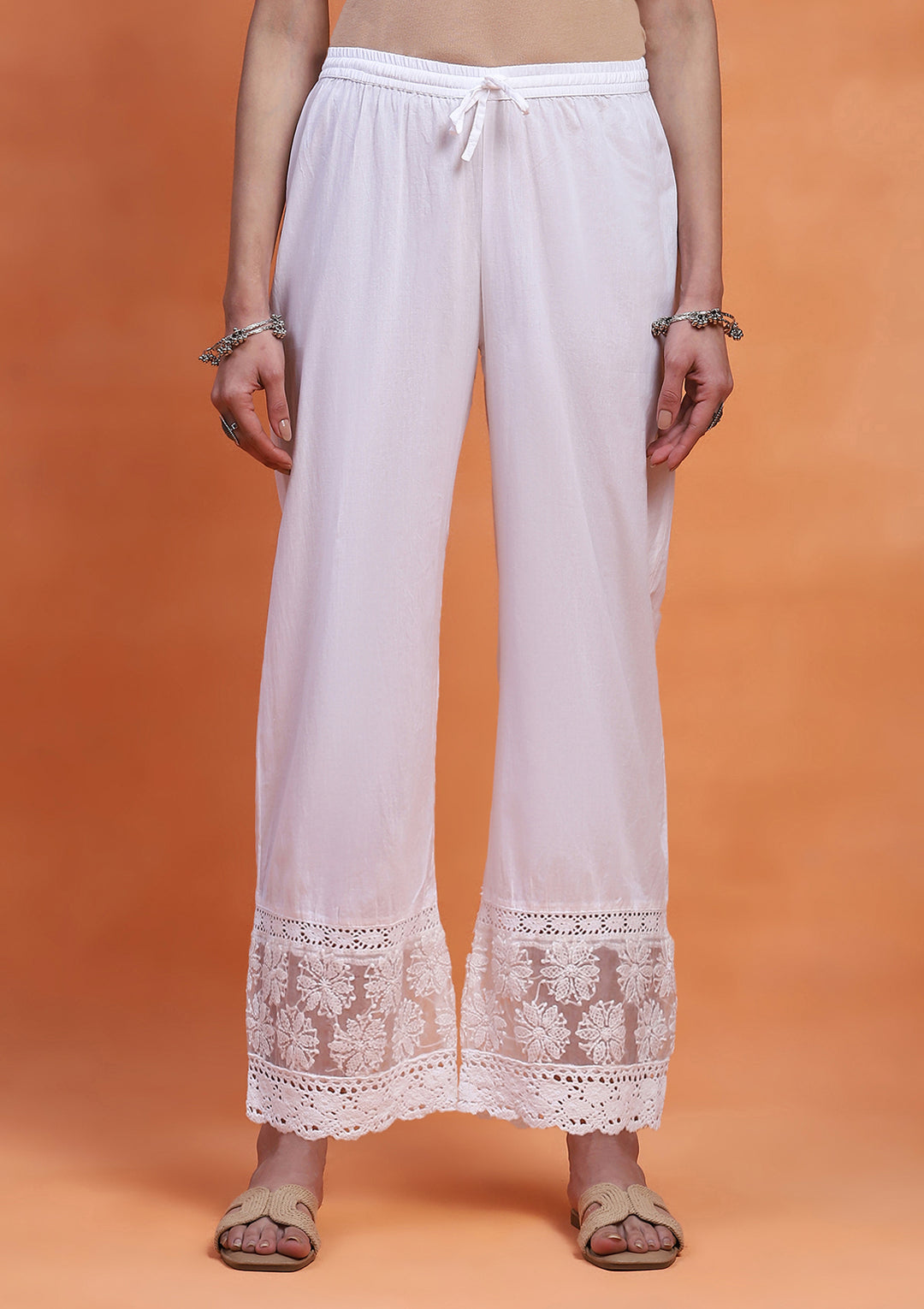 HOC Cotton Chikankari Solid Women's Palazzo - White
