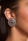 HOC Handcrafted Silver Tone Mandala Chakra Green Stone Studs