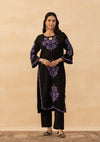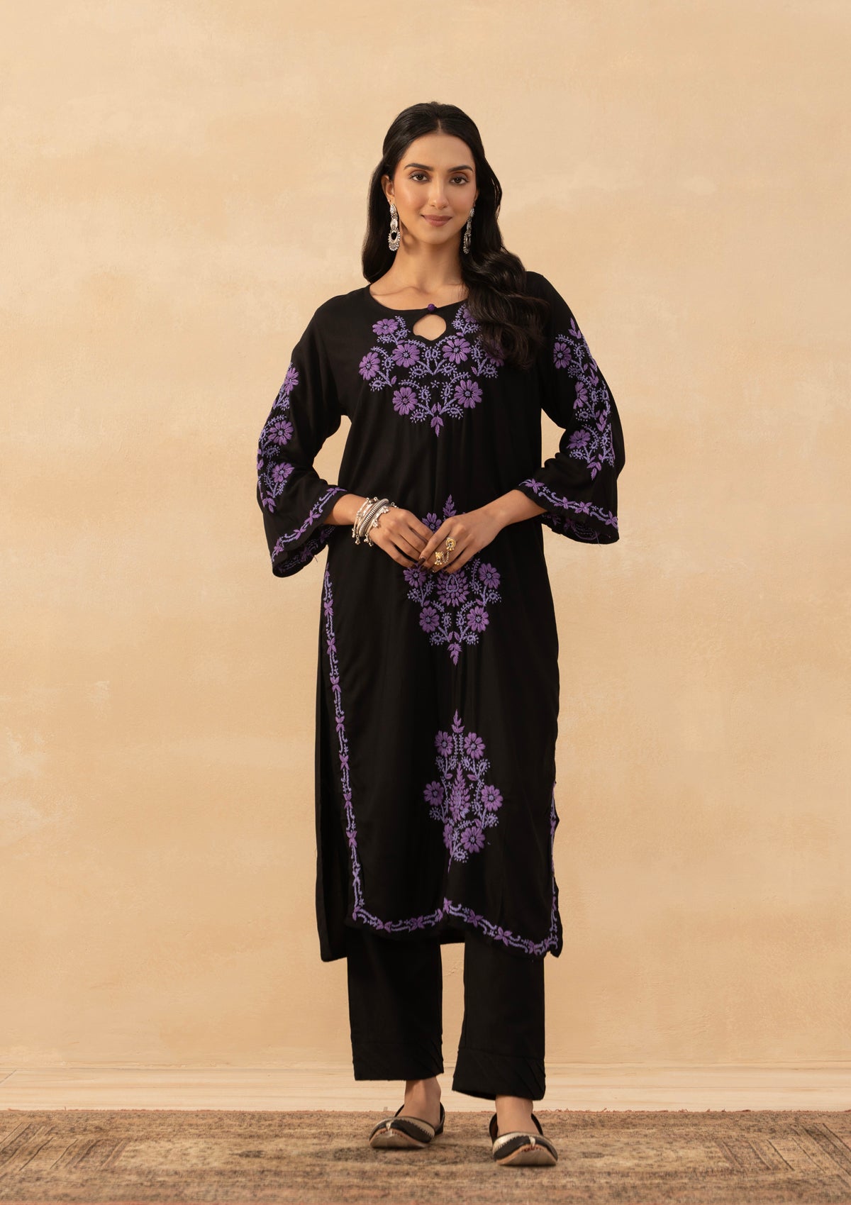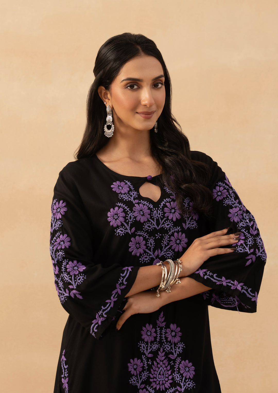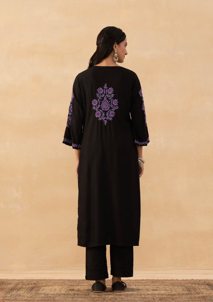 HOC Rayon Chikankari Solid Women's Long Kurta - Black