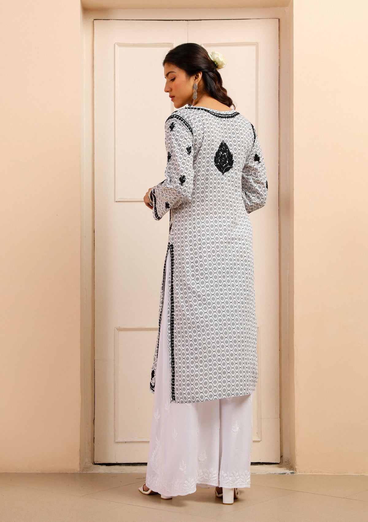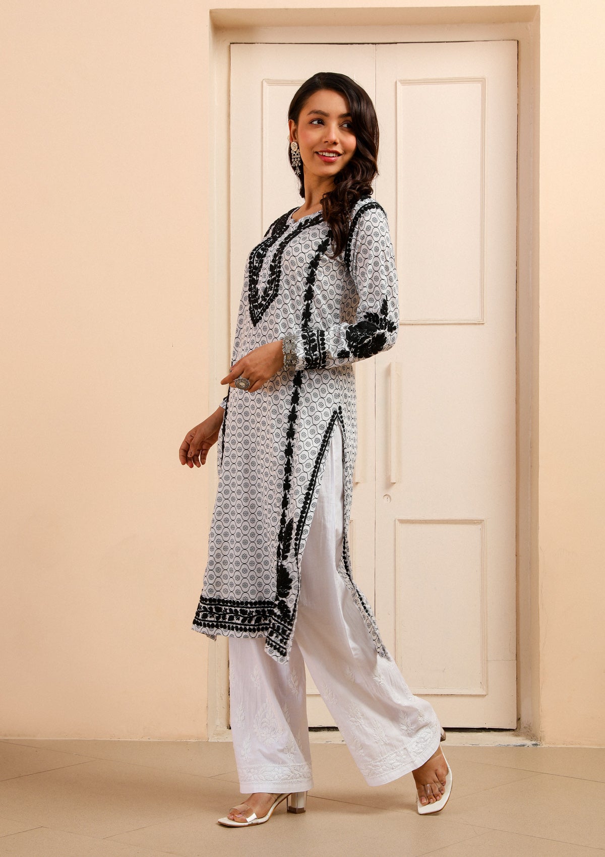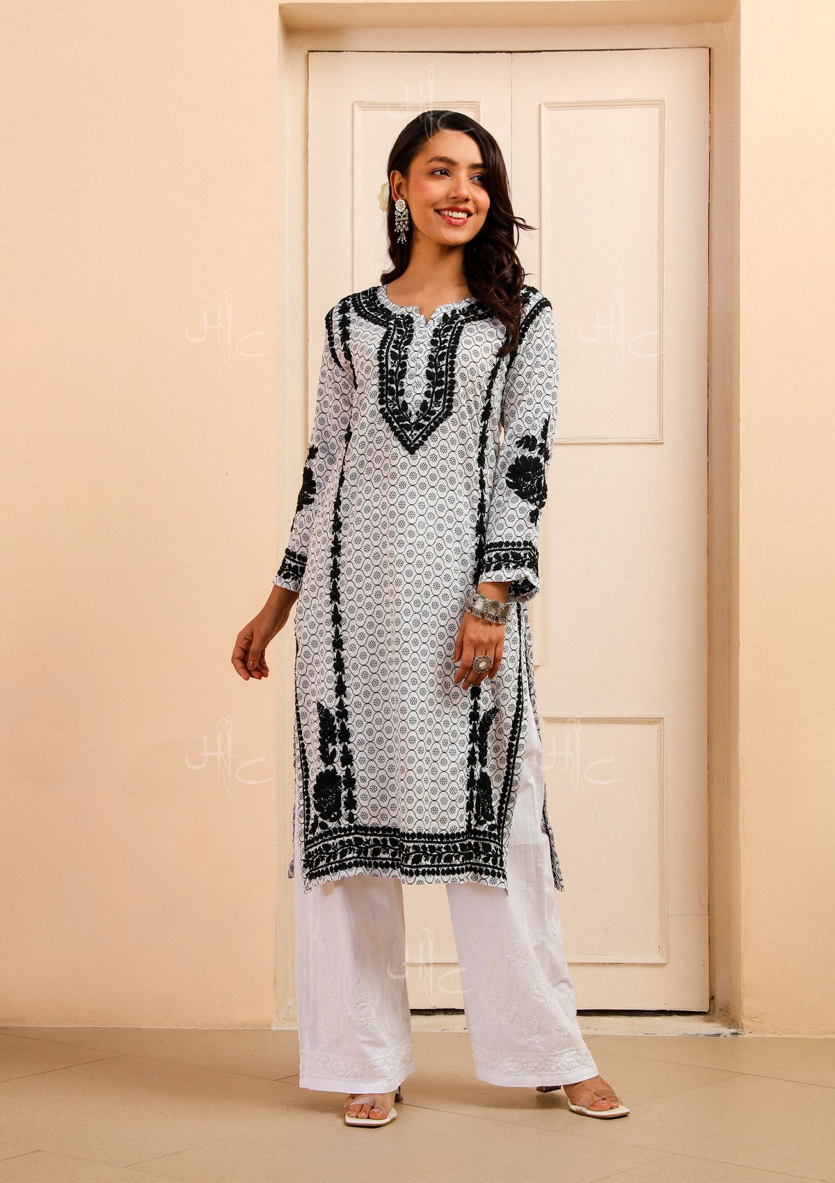 HOC Mulmul Chikankari Printed Women's Kurta - White