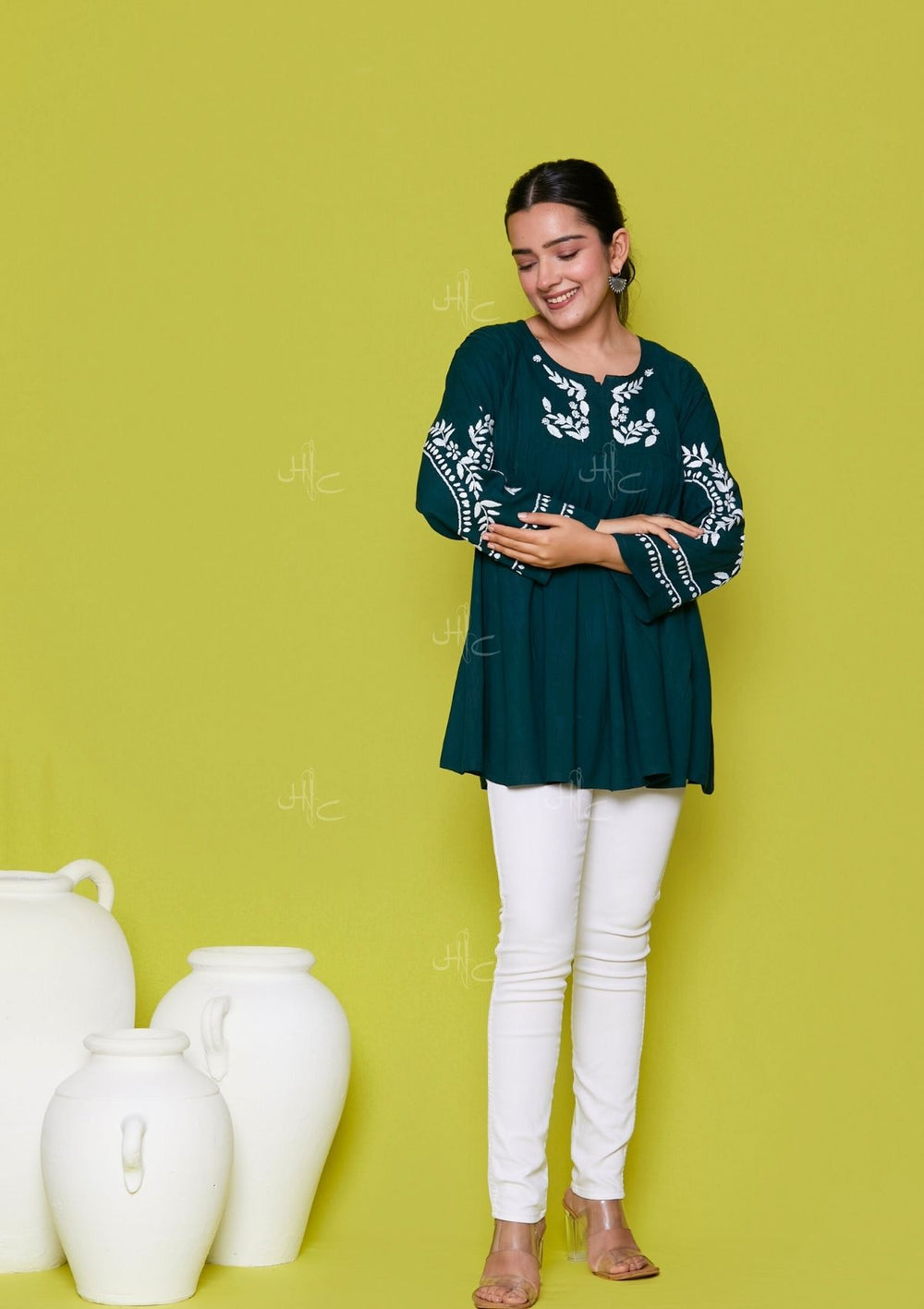 Rayon Chikankari Solid Women's Long Kurta - Red