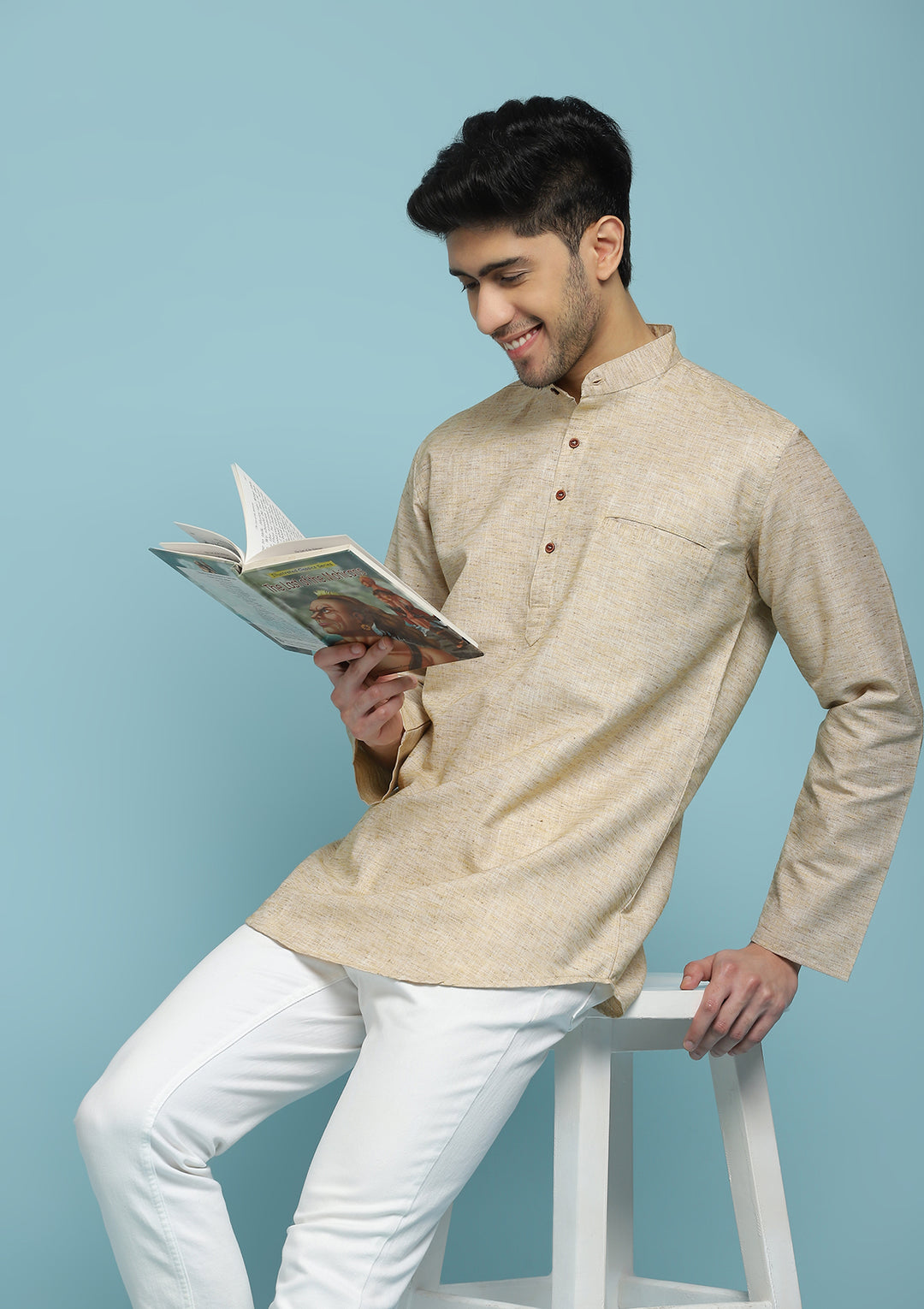 1. Poly Cotton Solid Men's Short Kurta - Beige