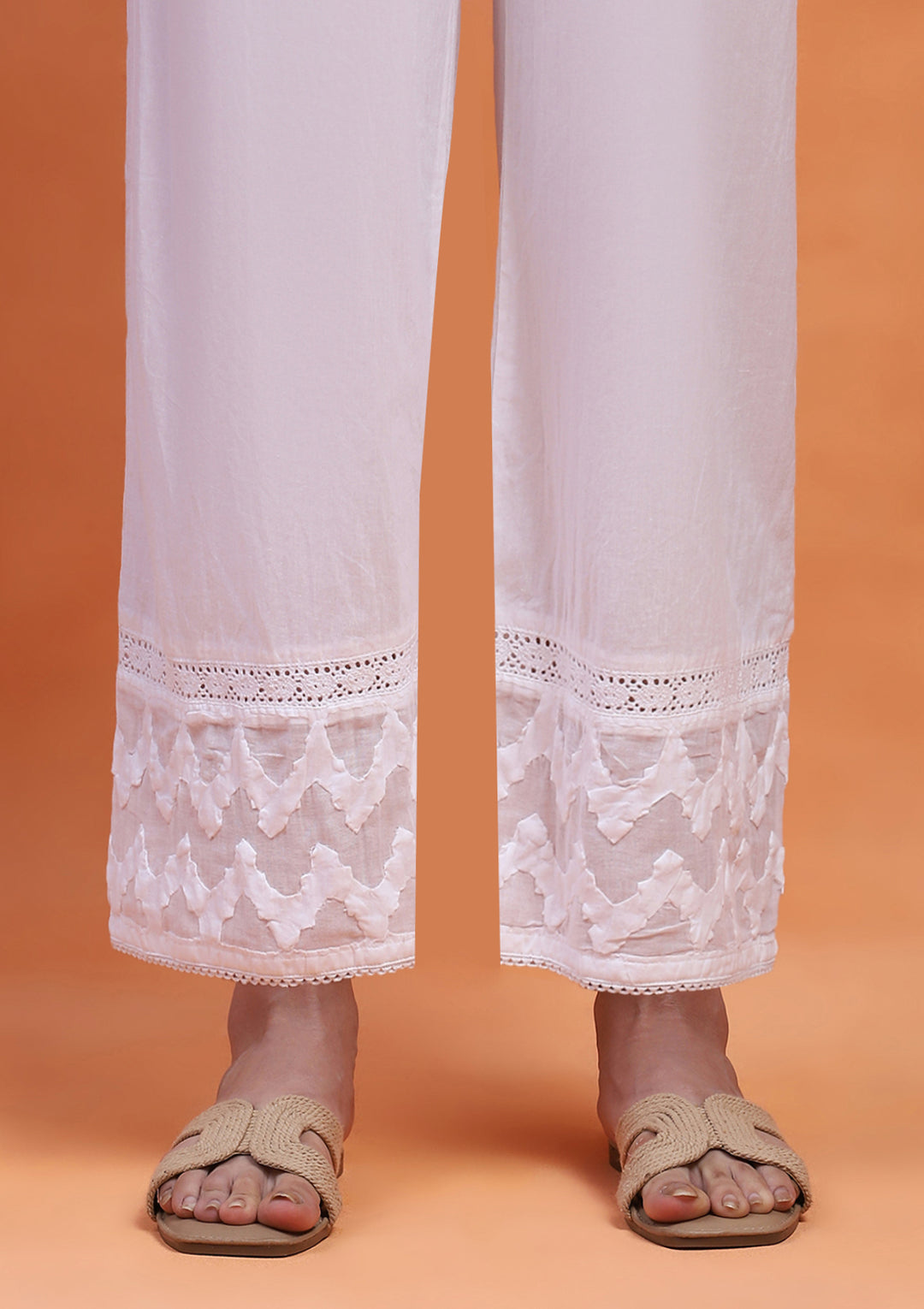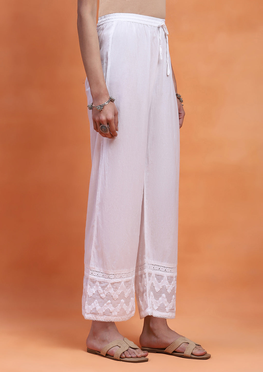 HOC Cotton Chikankari Solid Women's Pant - White