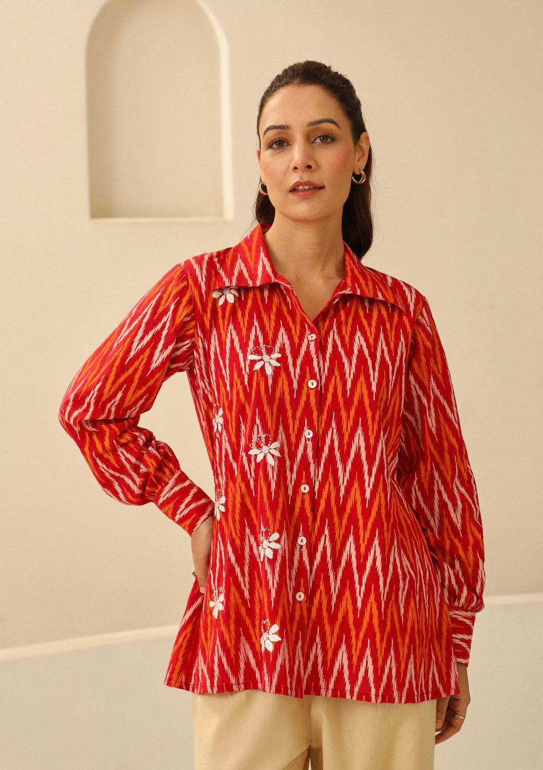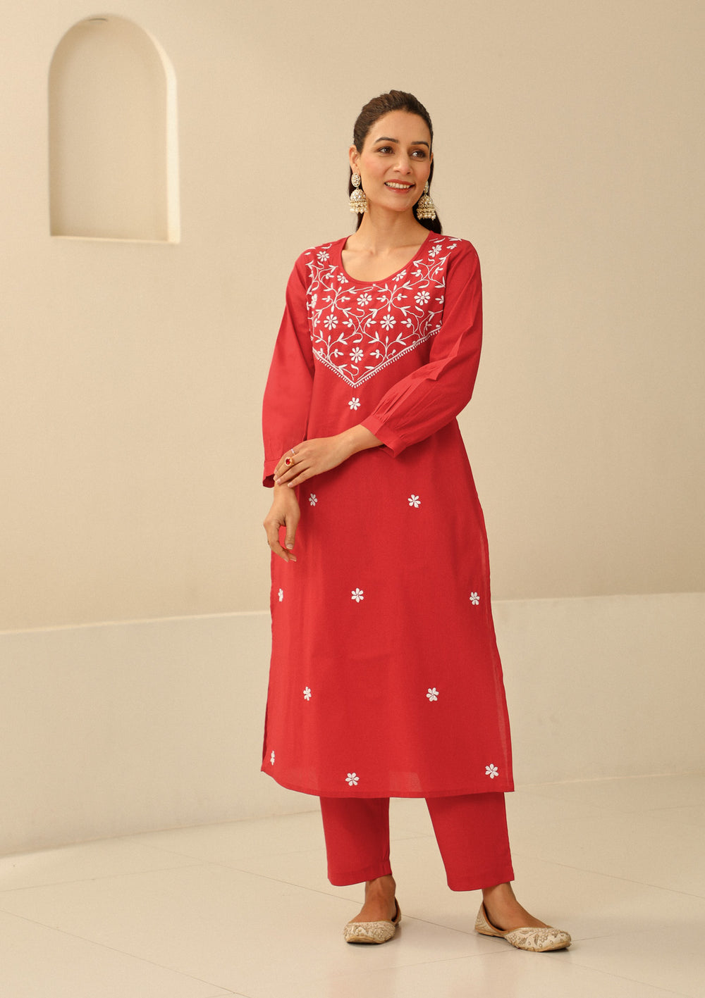 HOC Kashmiri Wool Aari Embroidered Solid Women's Short Kurta - Rust