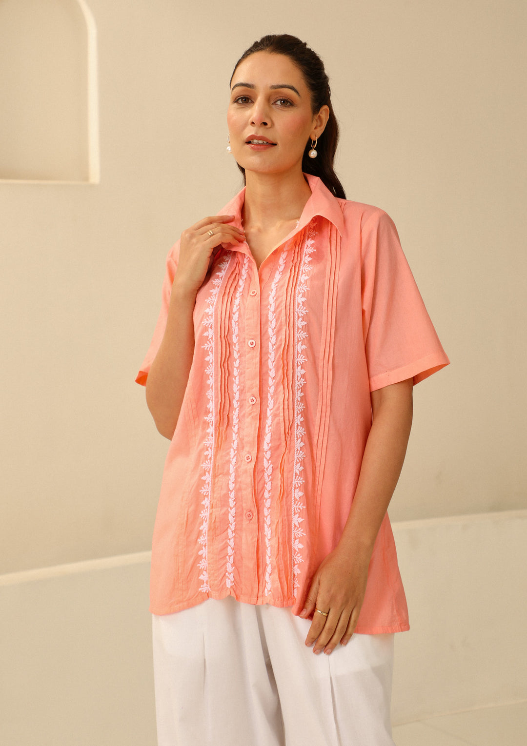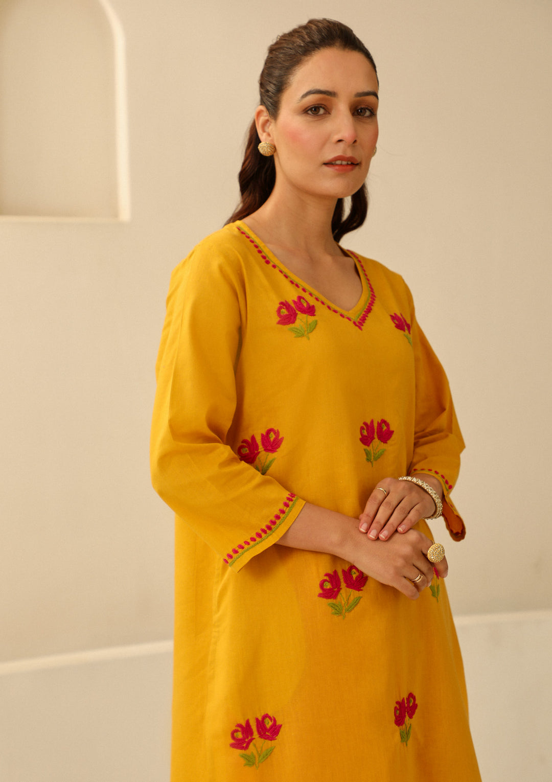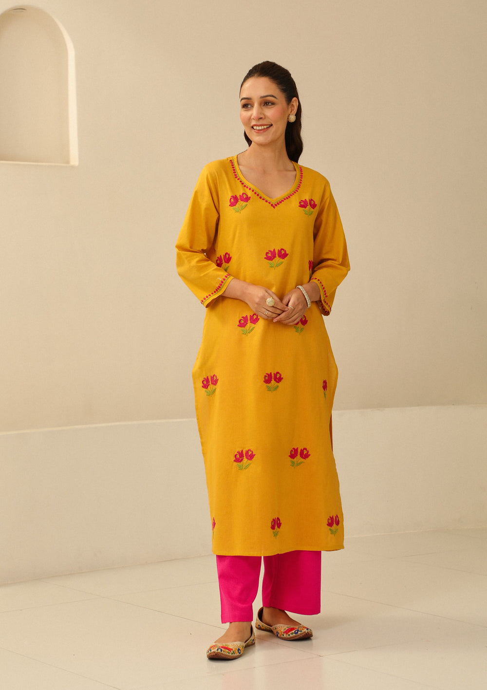 HOC Kashmiri Wool Aari Embroidered Solid Women's Short Kurta-Dark Pink