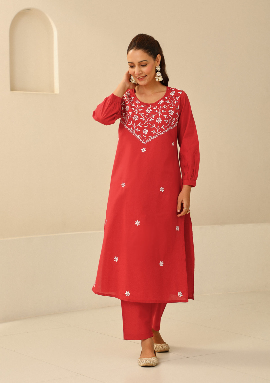 HOC Kasmira Aari Embroidered Wool Straight Kurta Set-Black