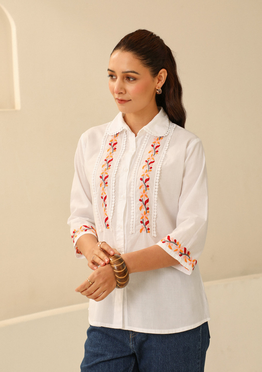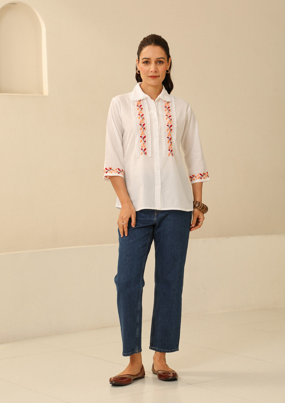 HOC Kasmira Aari Embroidered Wool Short Kurta-Beige