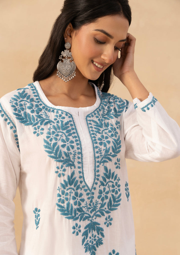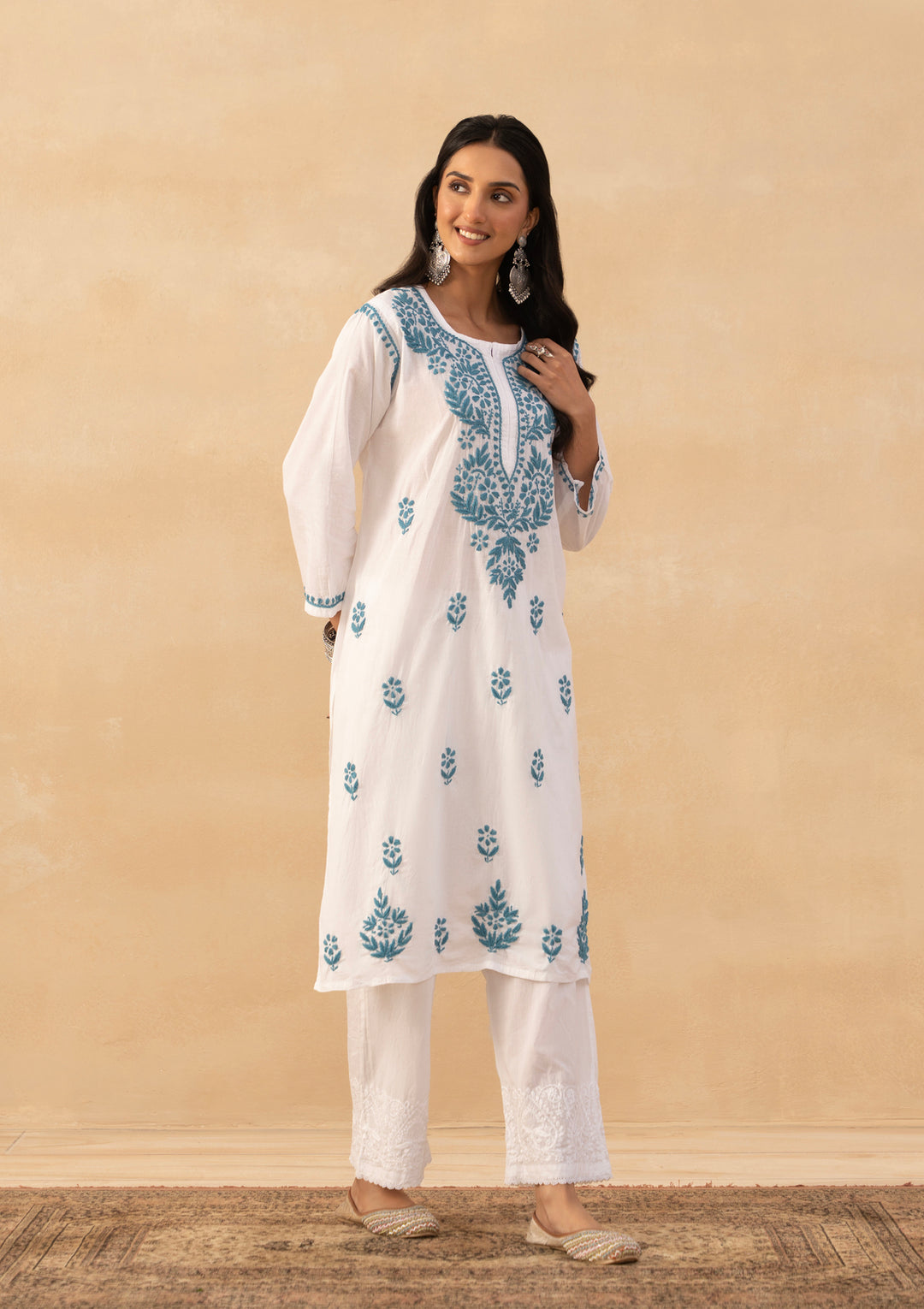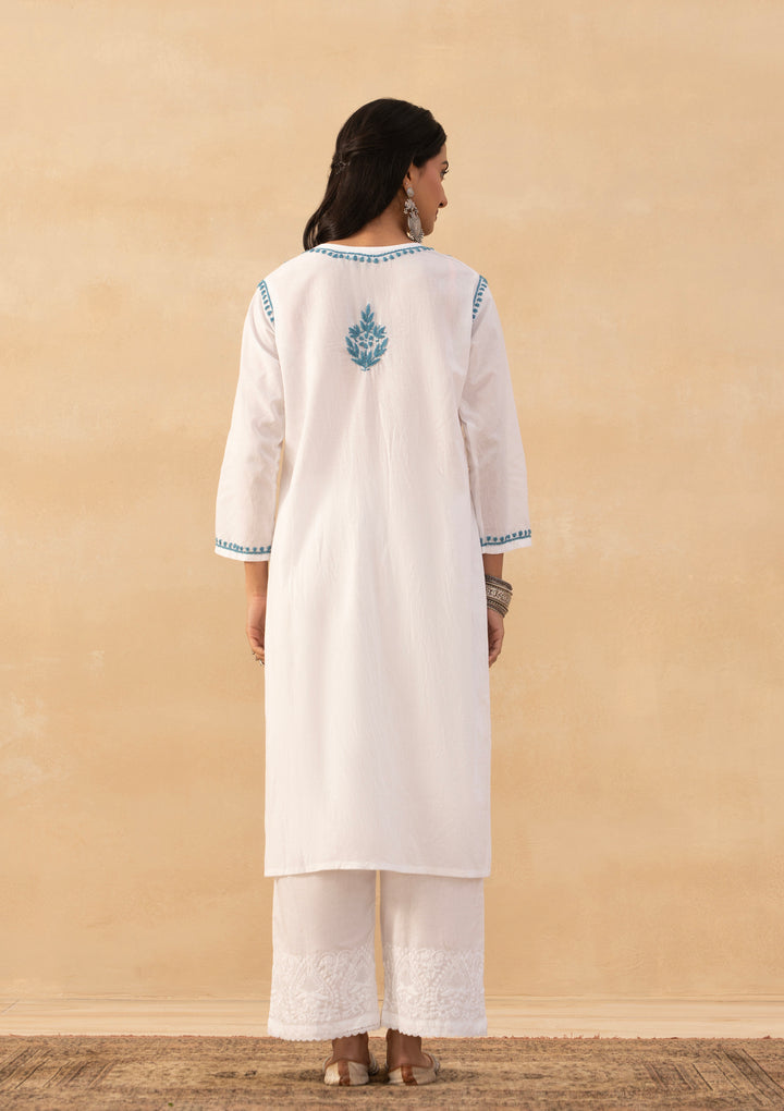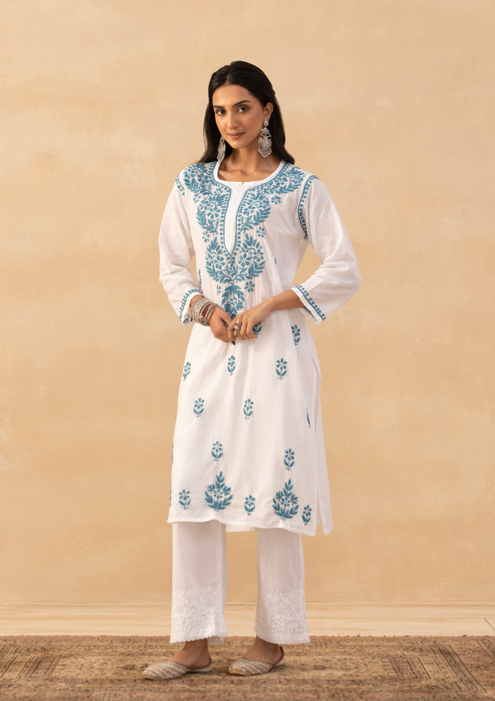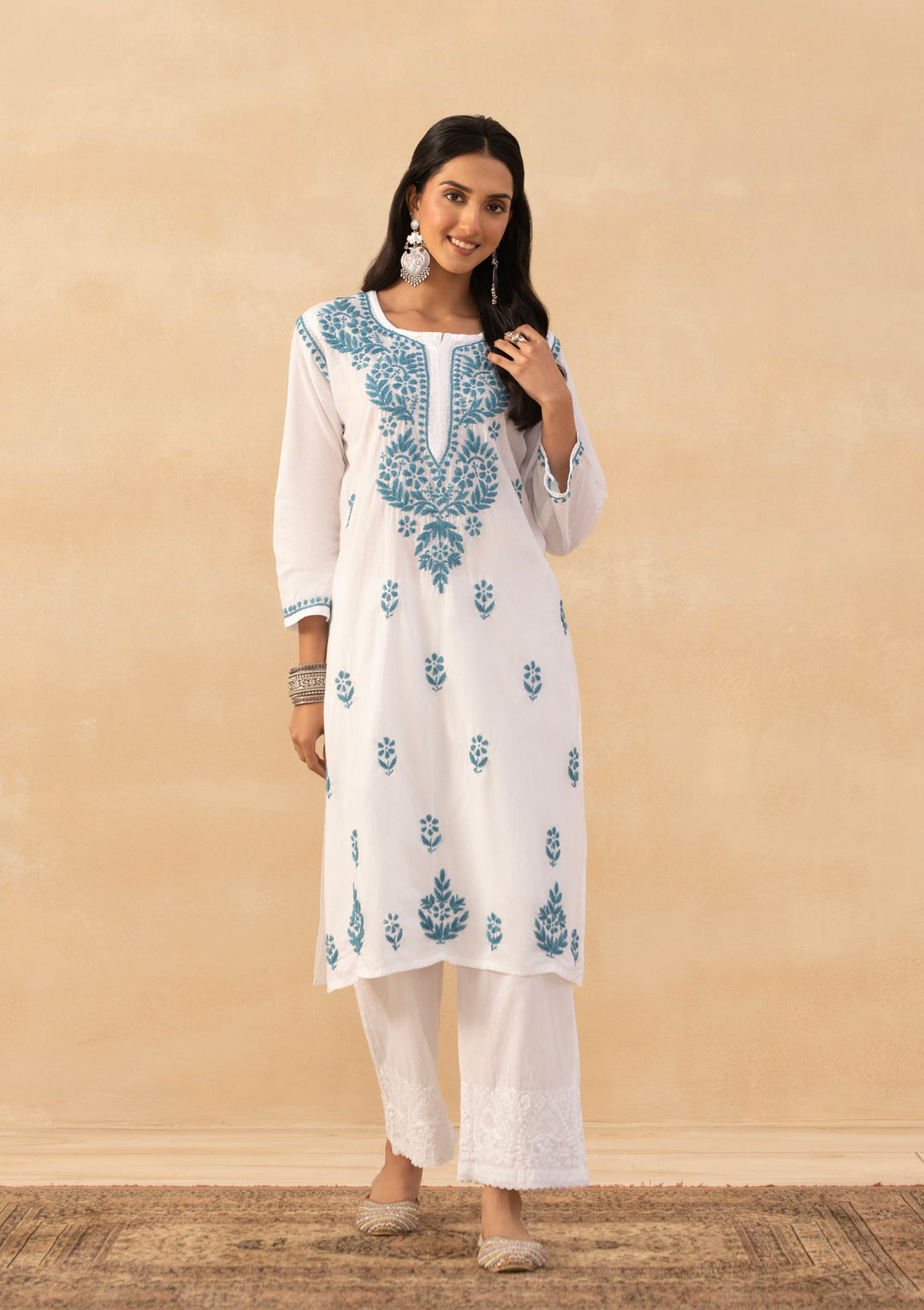 HOC Cotton Chikankari Solid Women's Long Kurta -White