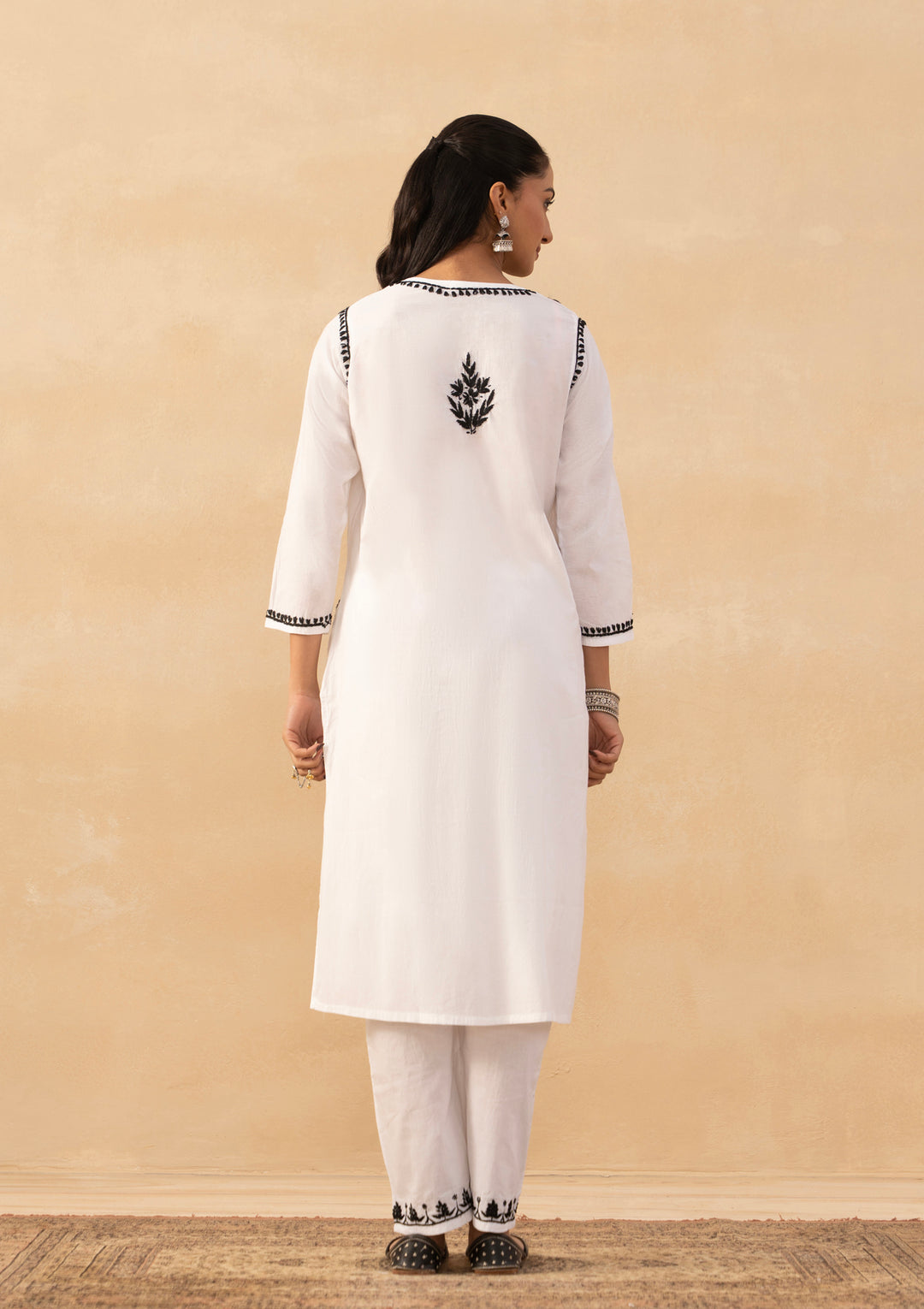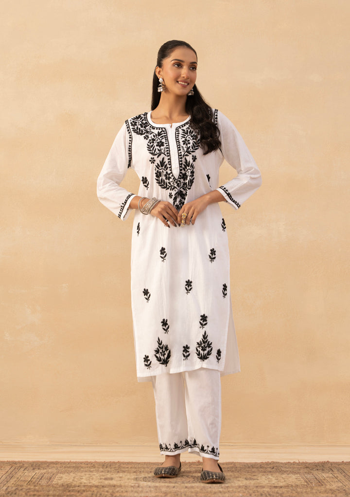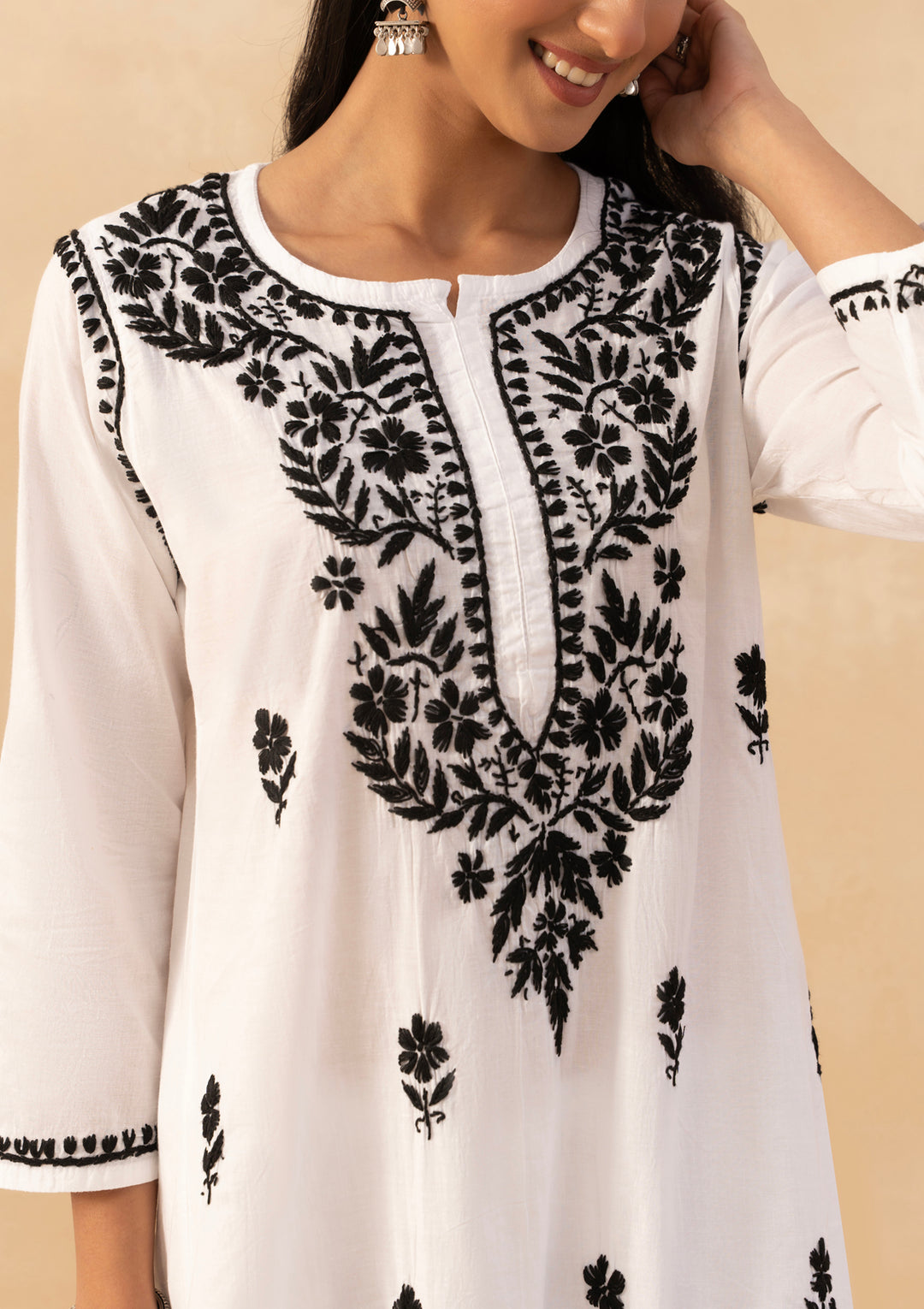 HOC Cotton Chikankari Solid Women's Long Kurta - White