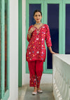 HOC Aari Embroidered Cotton Solid Women's 2 PC Co-ord Set - Red