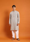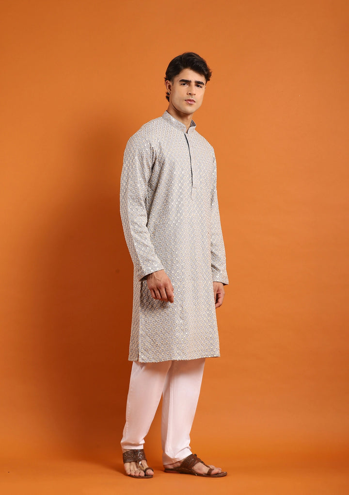 HOC Rayon Embroidered With Sequins Solid Men's Long Kurta- Light Grey