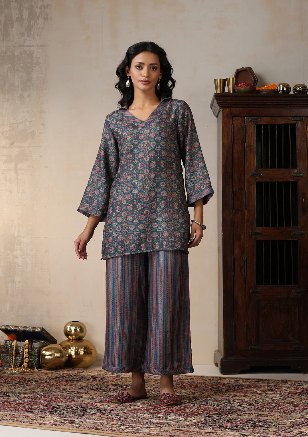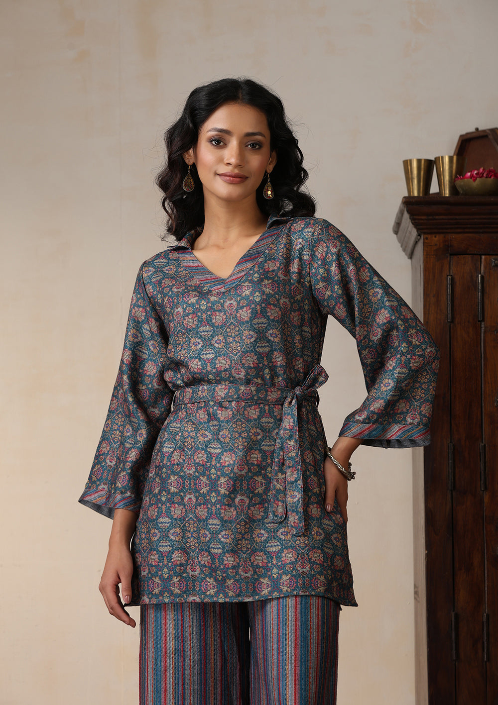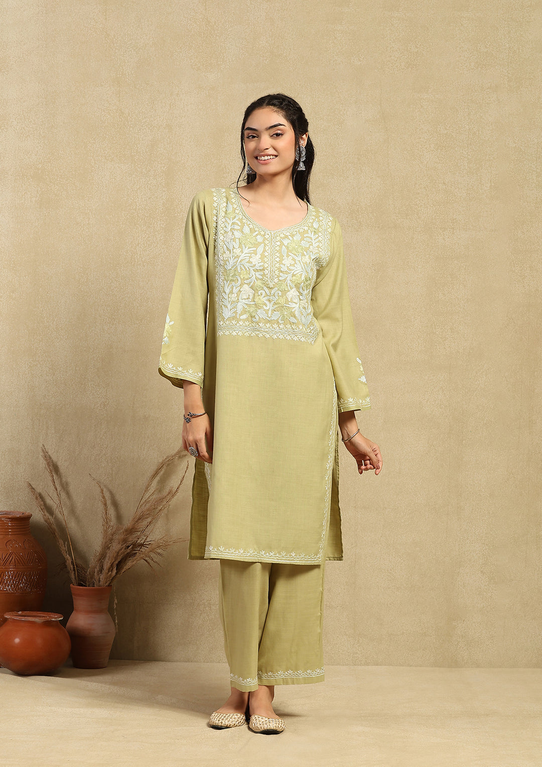 HOC Kashmiri Wool Aari Embroidered Straight Kurta Set- Green