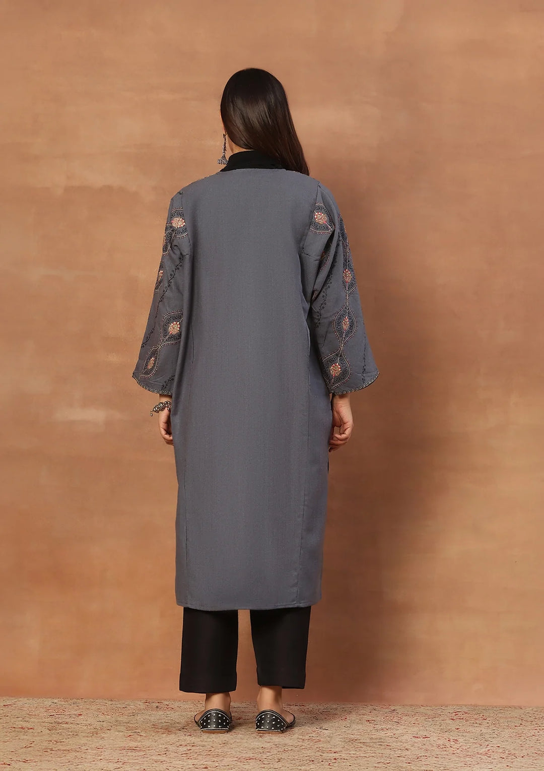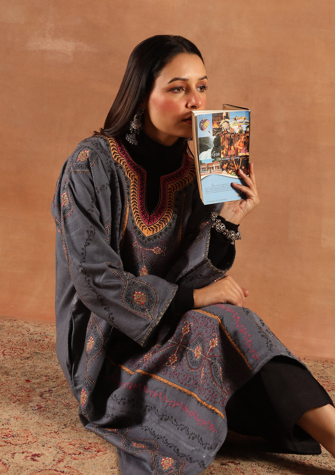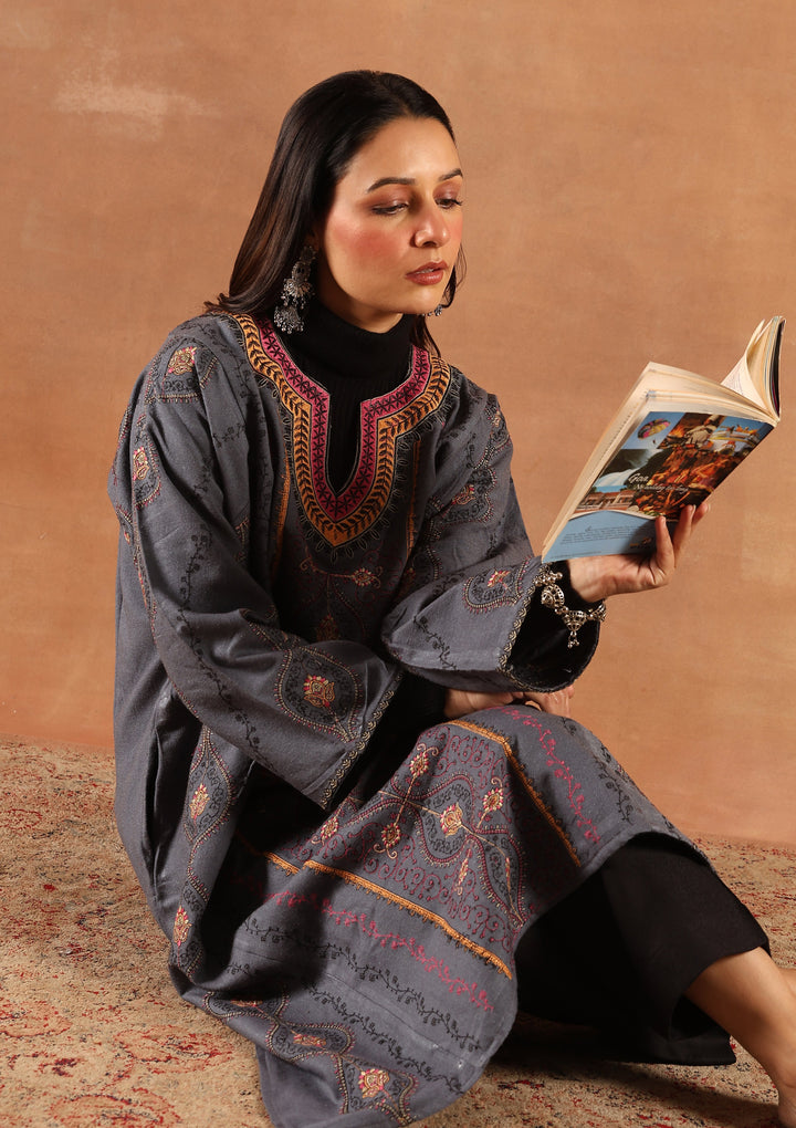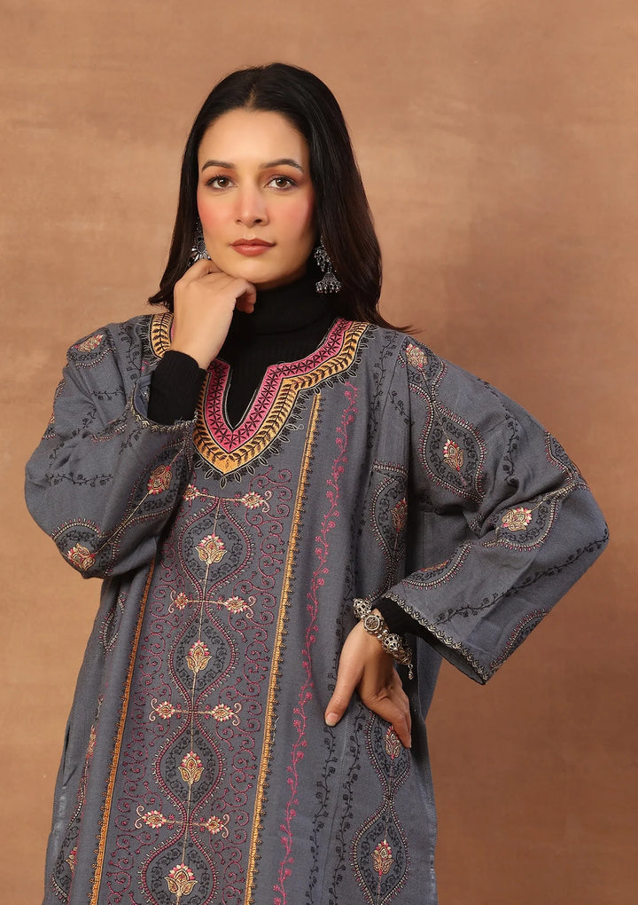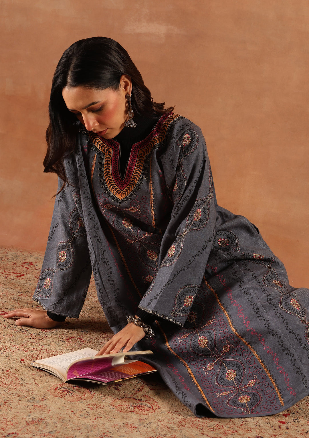 HOC Wool Sozni Inspired Solid Women's Long Phiran-Grey