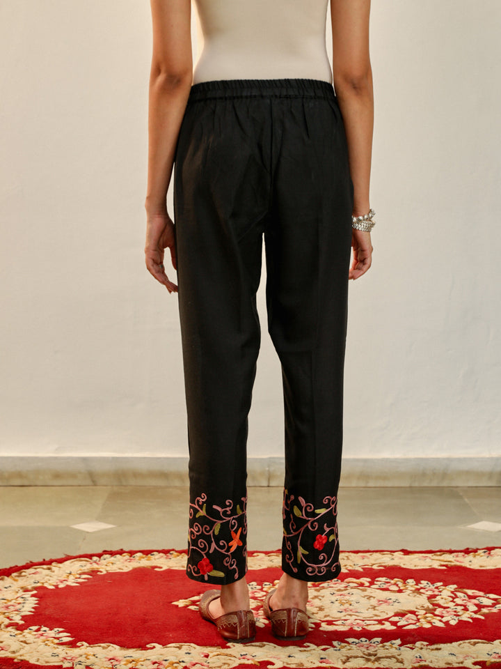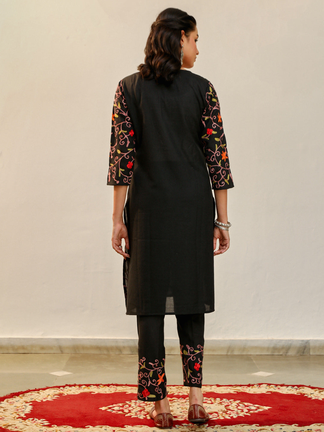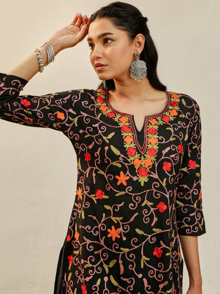 HOC Aari Embroidered Cotton Solid Women's 2PC Long Kurta Set - Black