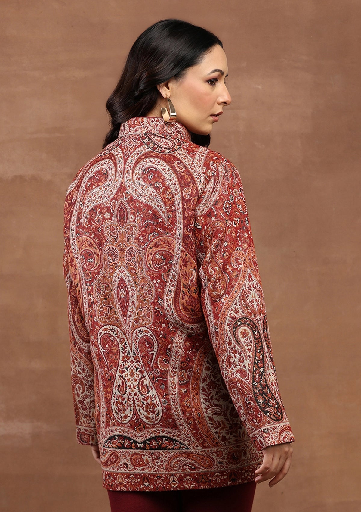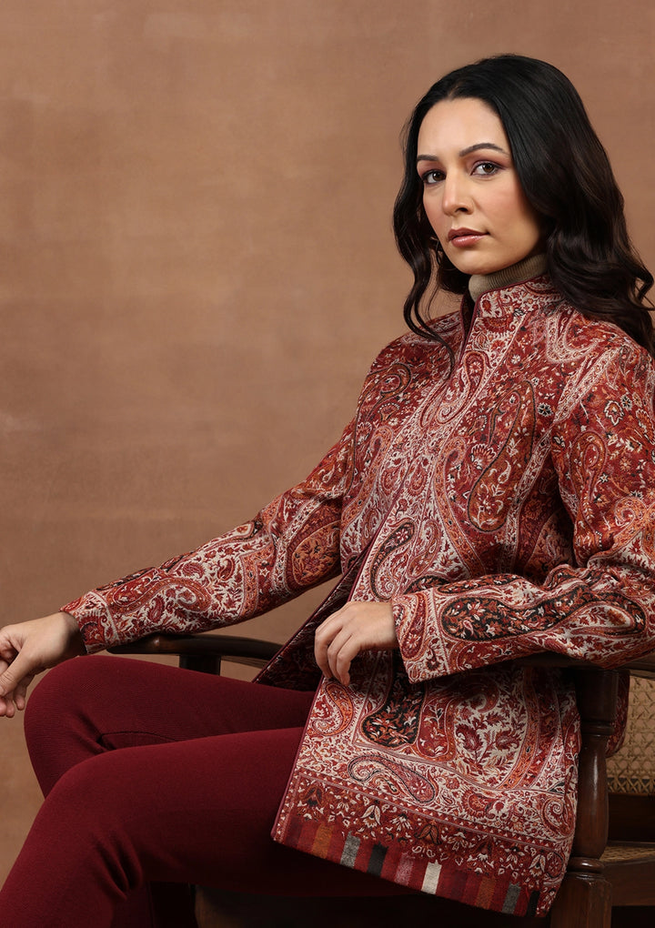HOC Kashmiri Wool Kani Weave Women's Jacket-Maroon