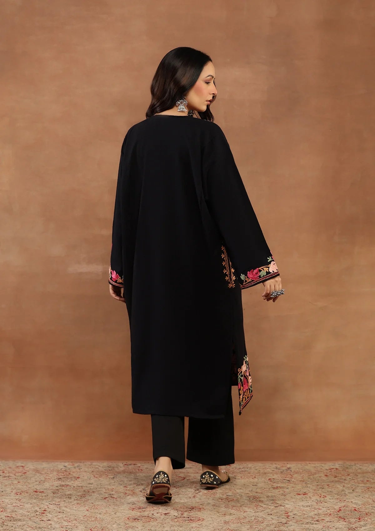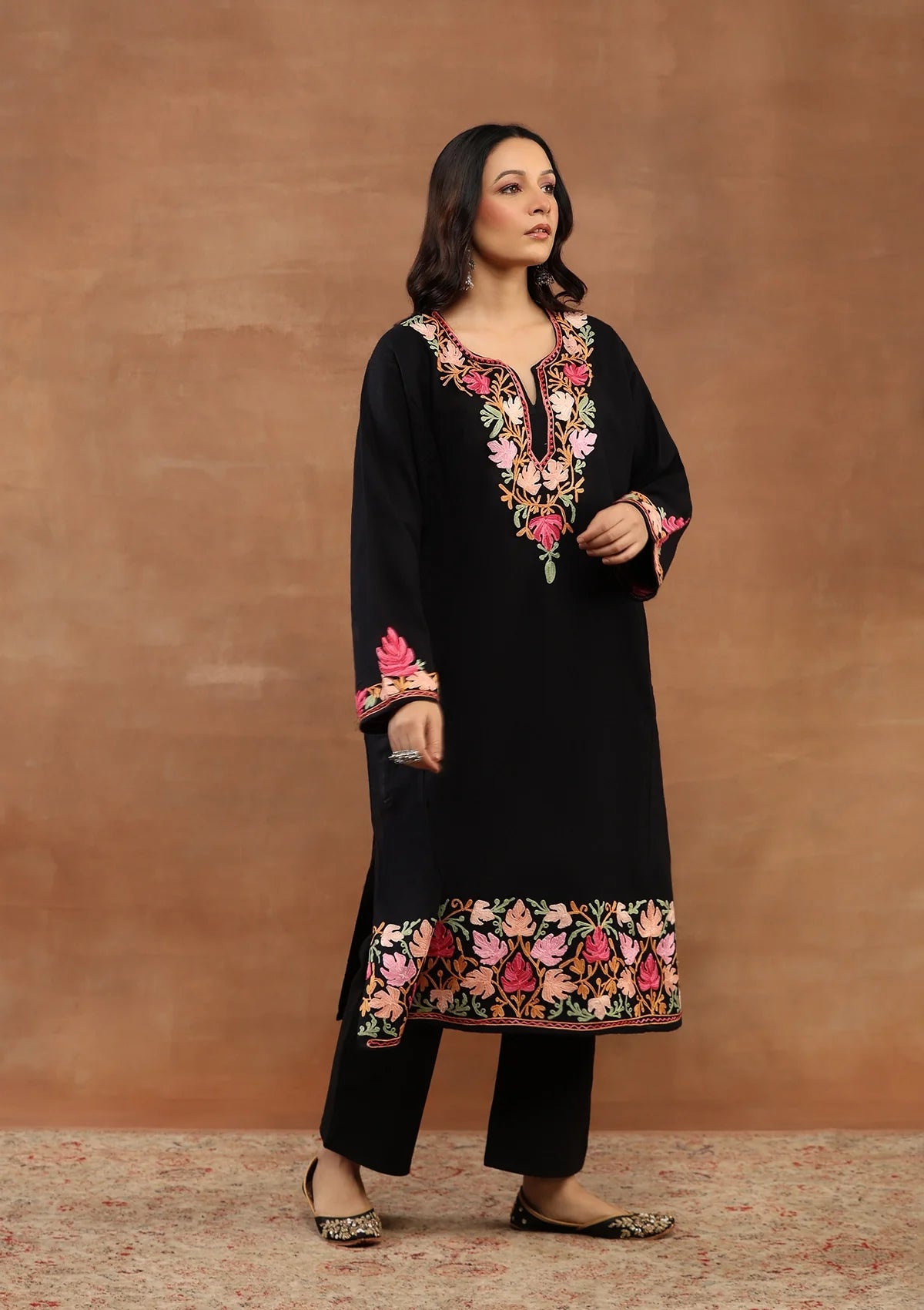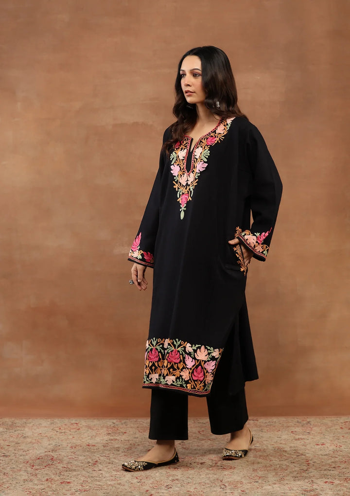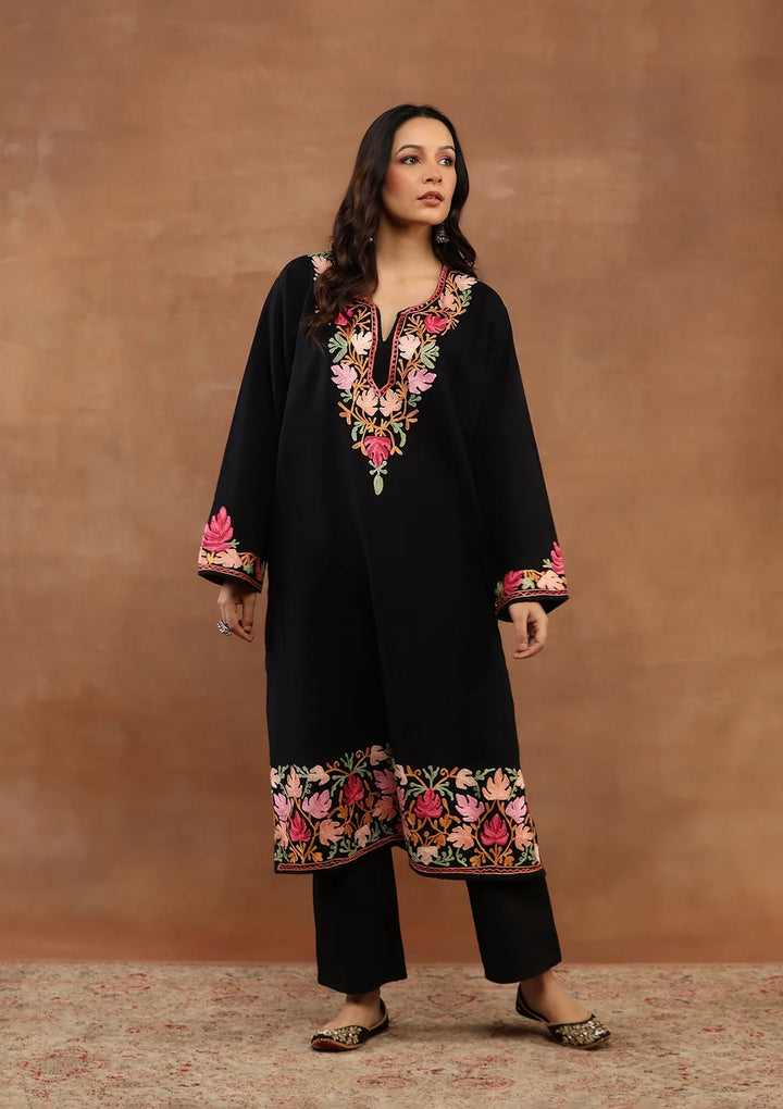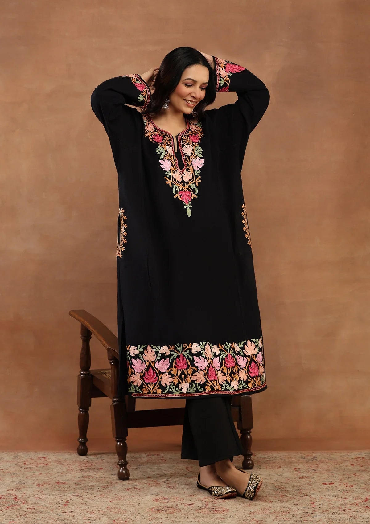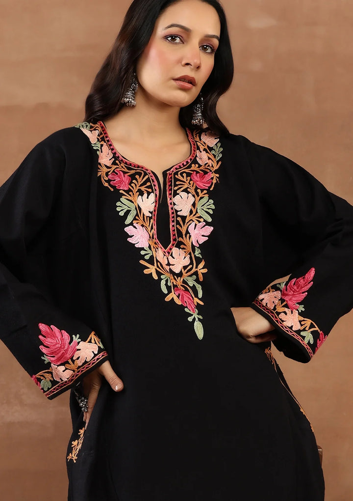 HOC Wool Aari Embroidered Solid Women's Phiran-Black