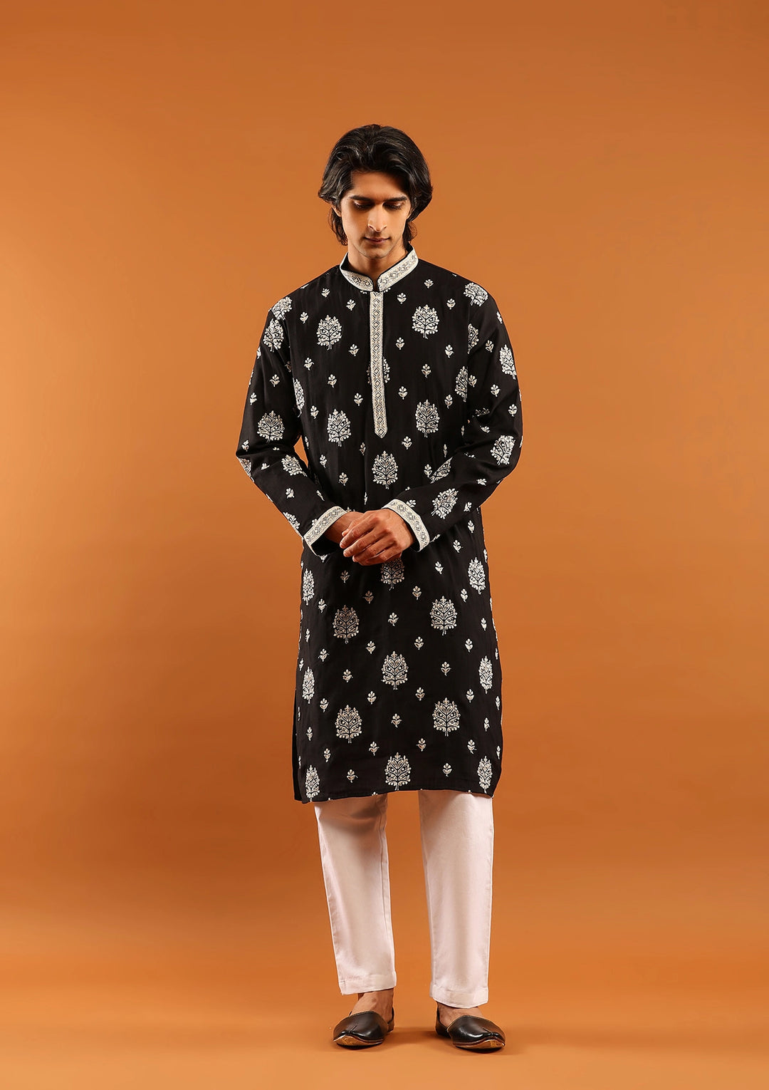 HOC Shayan Chikankari Cotton Straight Short Men's Kurta