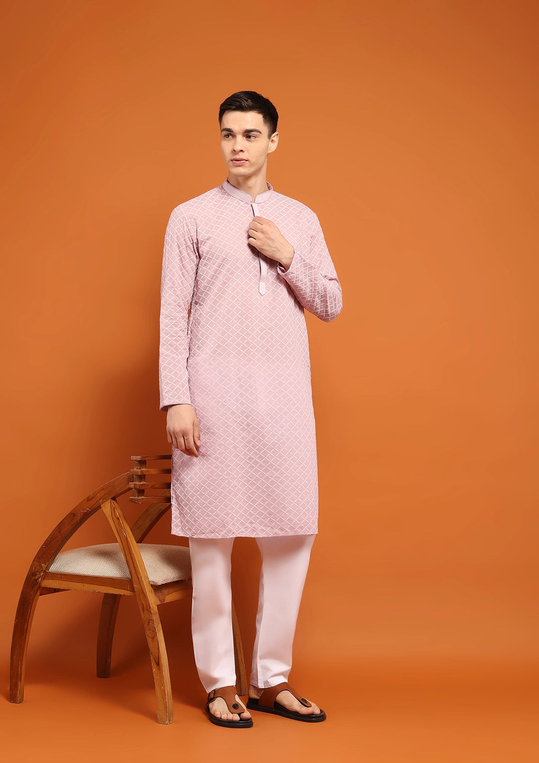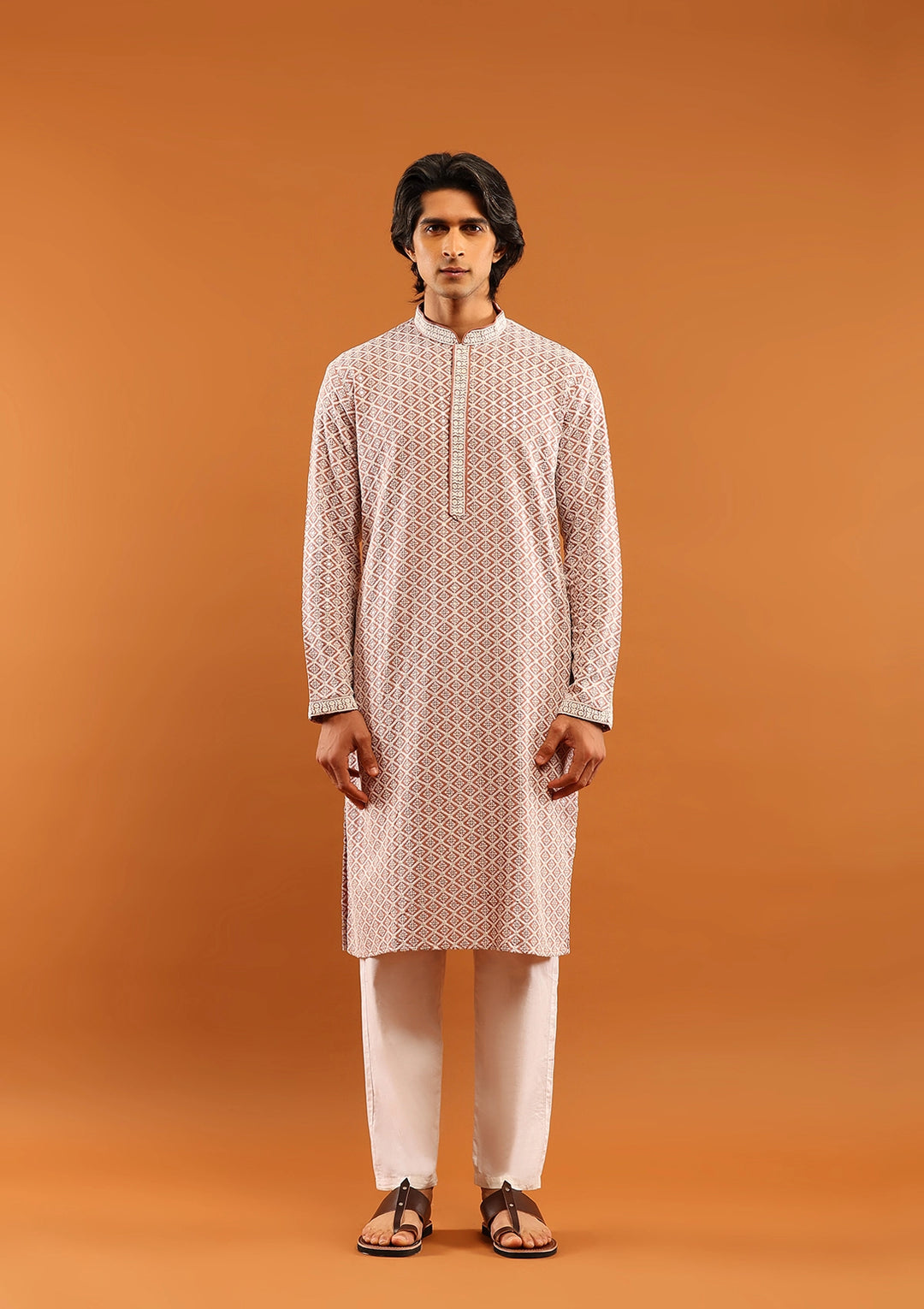 HOC Rayon Embroidered With Sequins Solid Men's Long Kurta- Dusty Pink