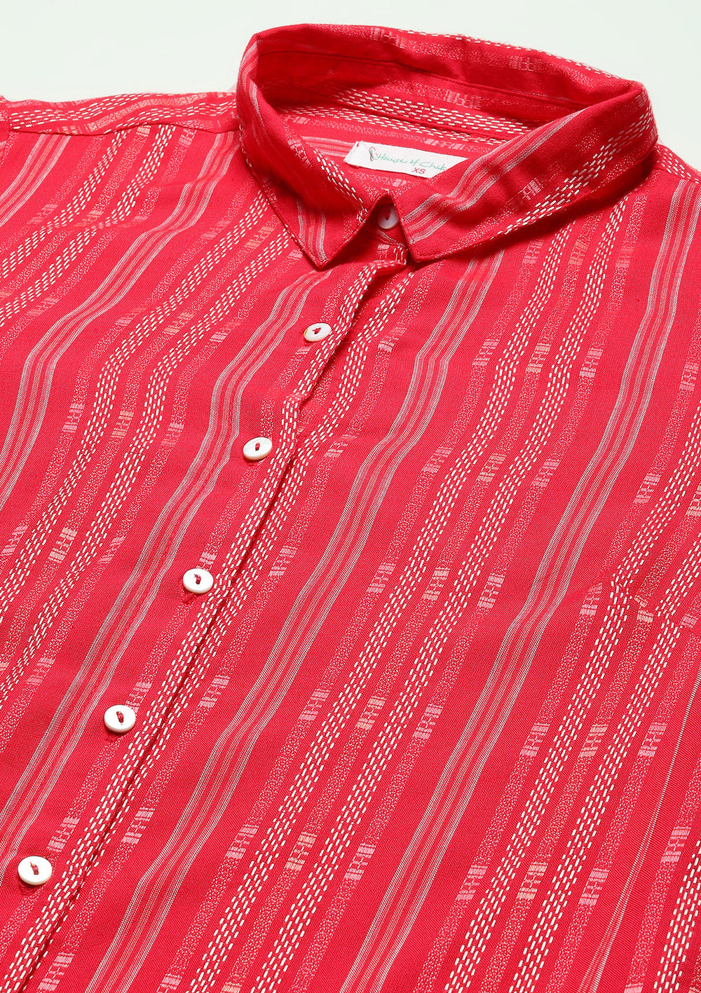 This maroon cotton printed women’s long kurta set features stylish geometric prints and ¾ sleeves, making is a great option for work, casual outings, dinner parties, and family gatherings. Crafted from soft cotton fabric, it is ideal for wearing all day long.
