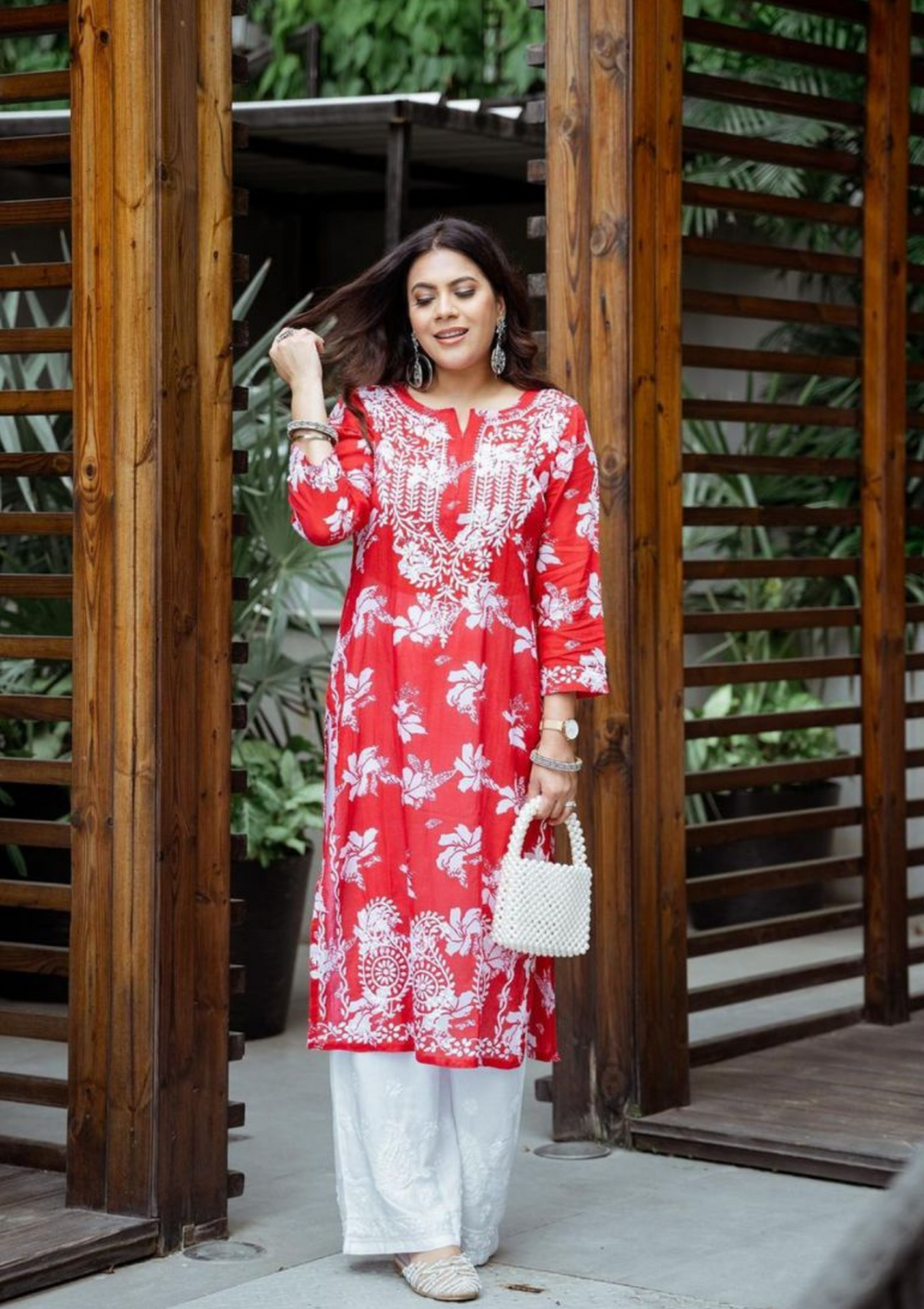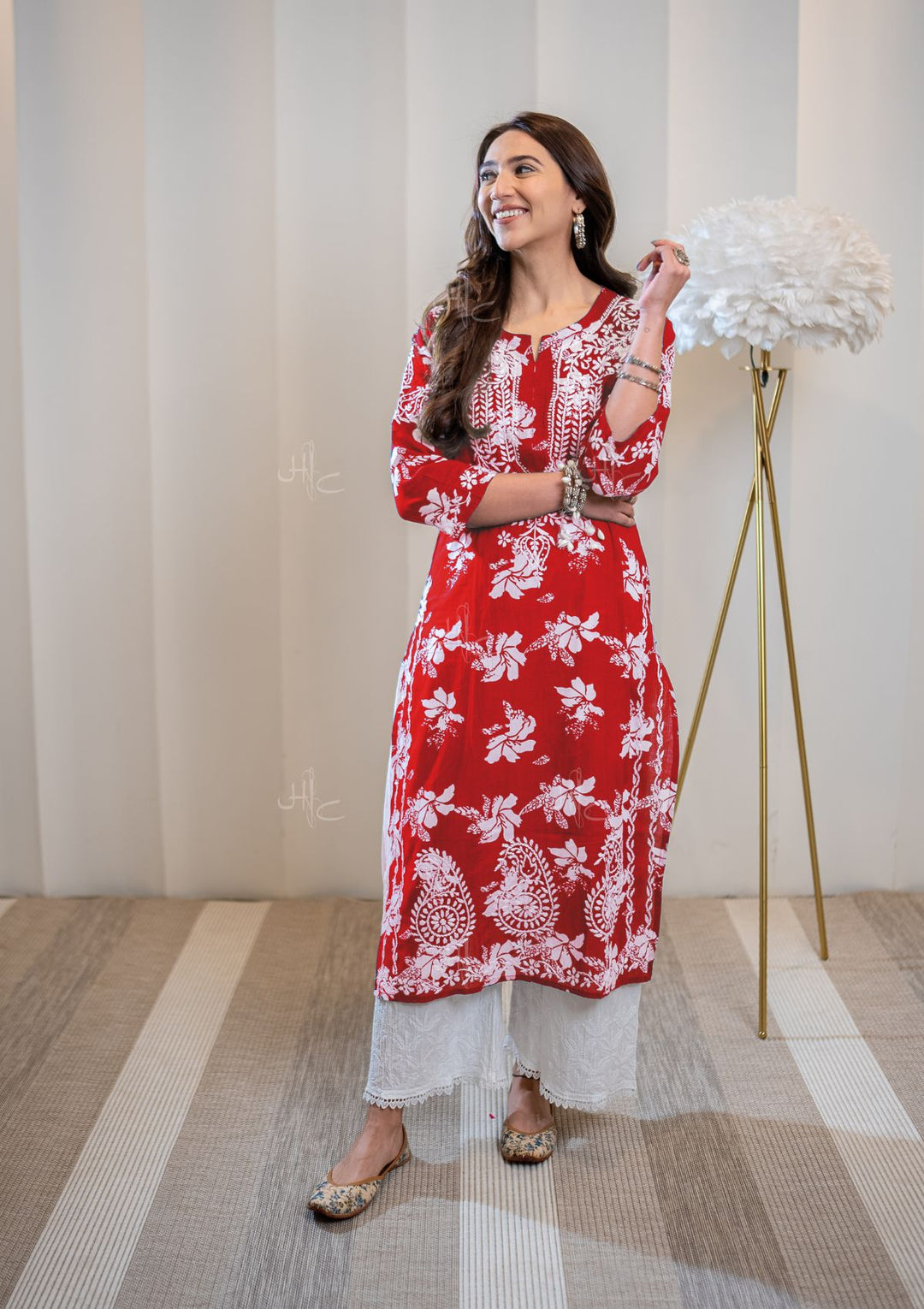 Jannat Zubair in Afifa Chikankari Rayon Kurta Set