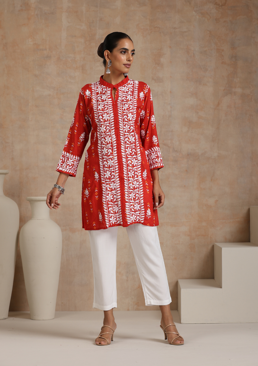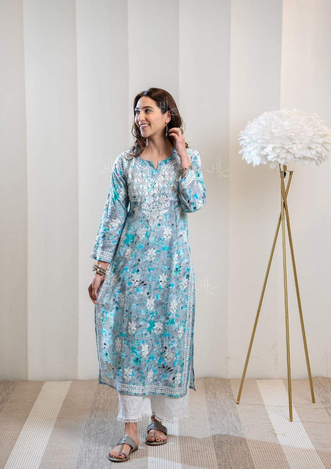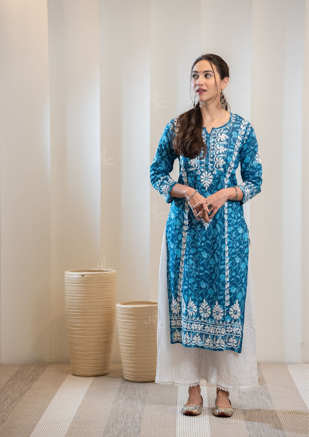 Sarah Sham in Aari Embroidered Cotton Solid Women's Long Kurta