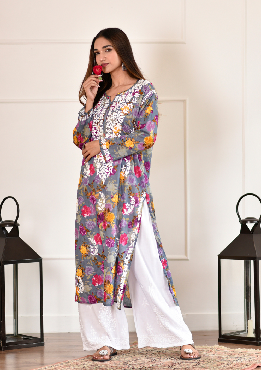 HOC Dia Chikankari Georgette Straight Kurta Set