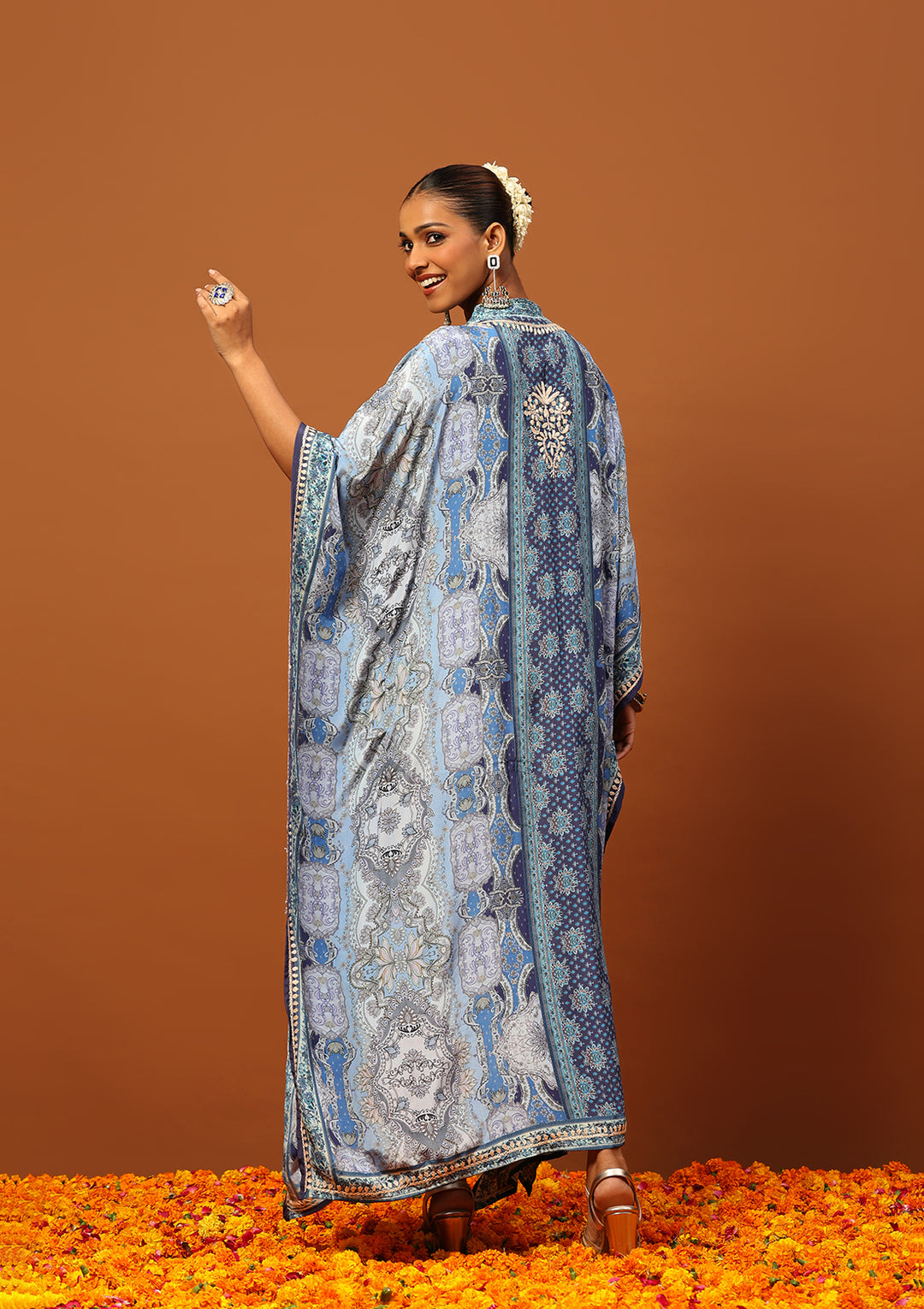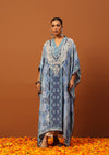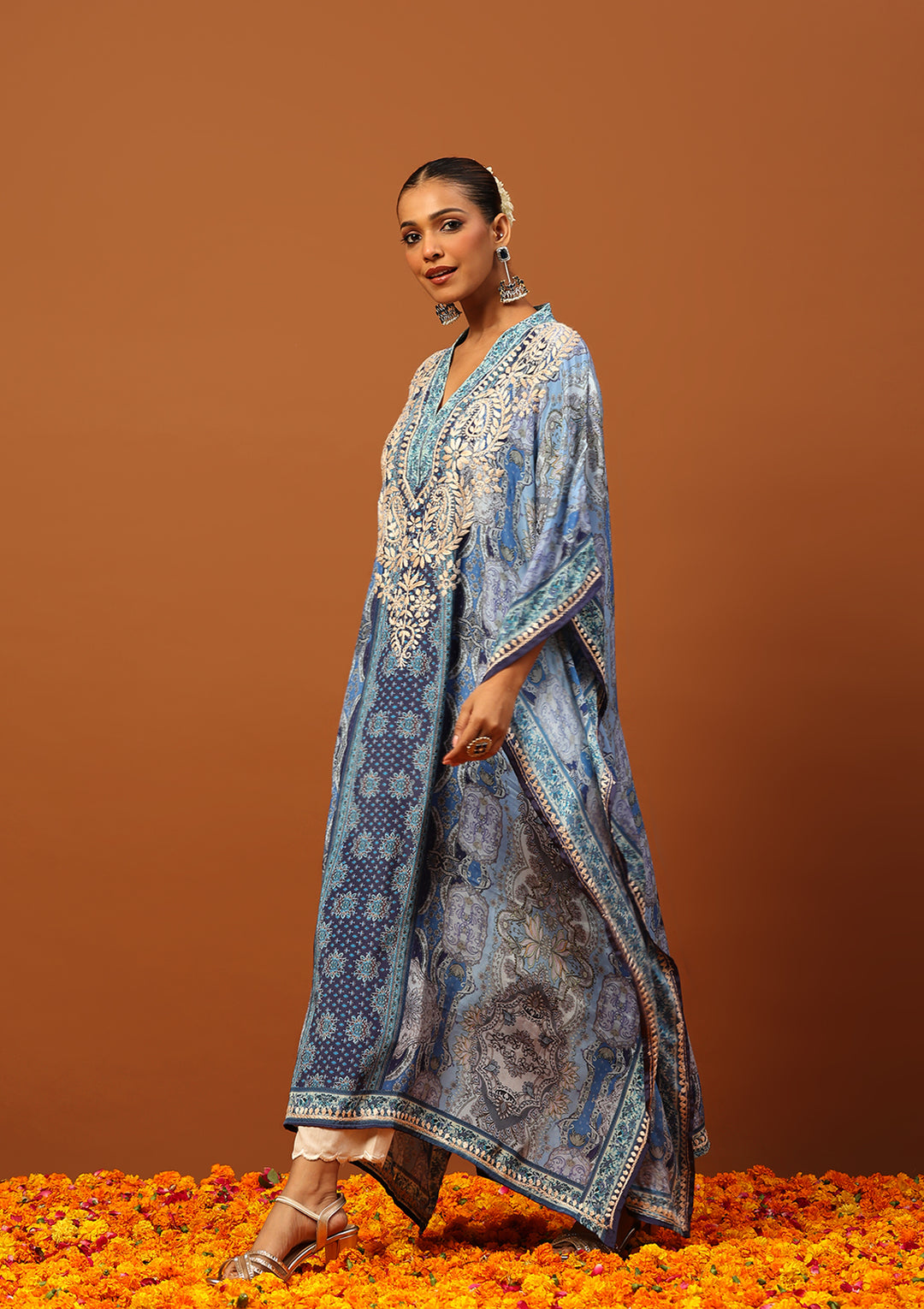 HOC Crepe Chikankari Printed Women's Kaftan -Blue