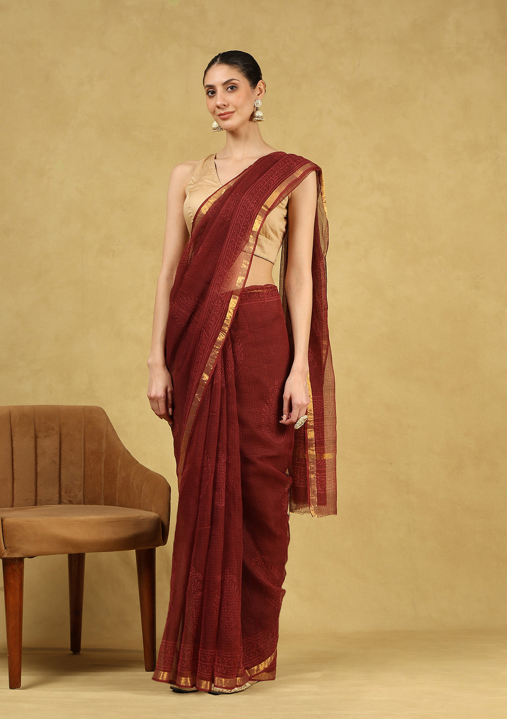 Kota Doria fabric is known for its light and airy feel, showcasing centuries of careful craftsmanship passed down through generati...