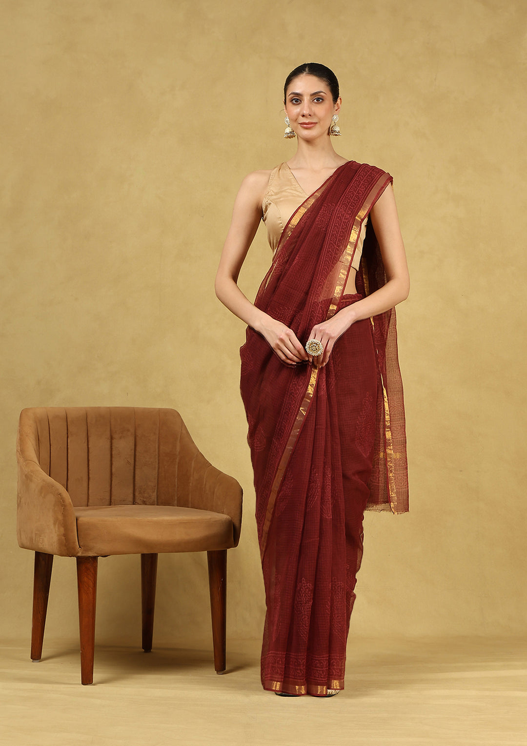 HOC Kota Chikankari Solid Women's Short Angrakha Kurta With Inner -Red