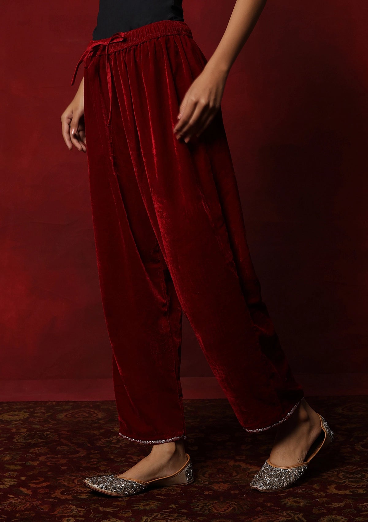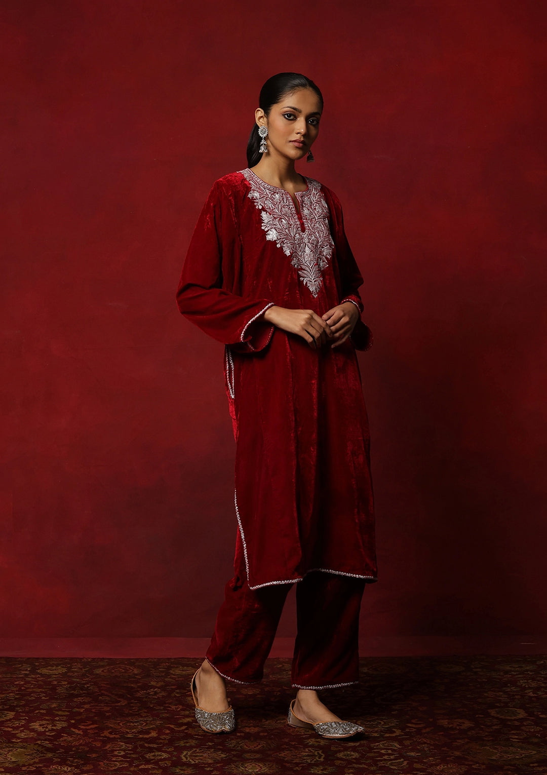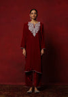HOC Kashmiri Velvet Tilla Embroidered Solid Women's 2 PC Phiran Set -Maroon