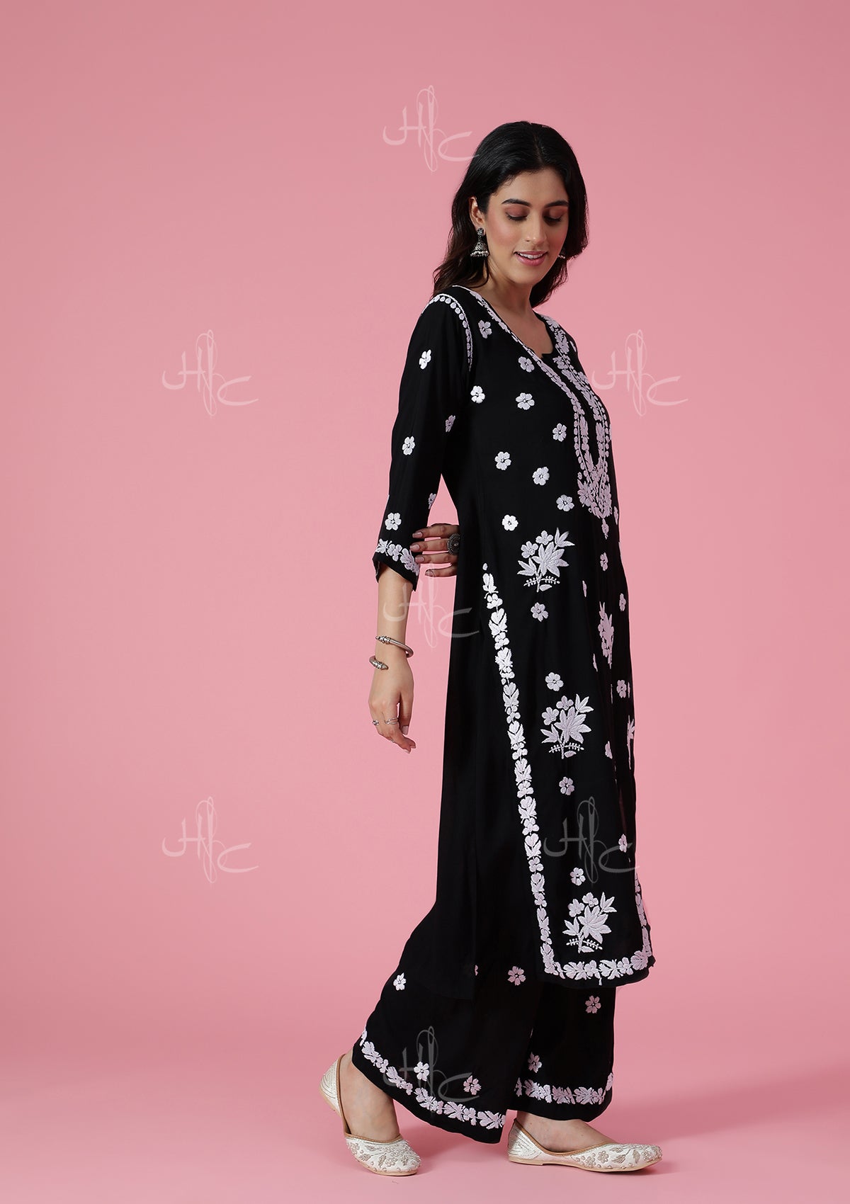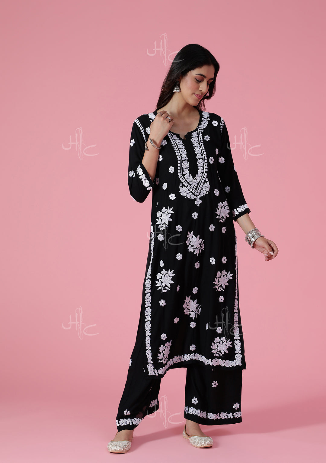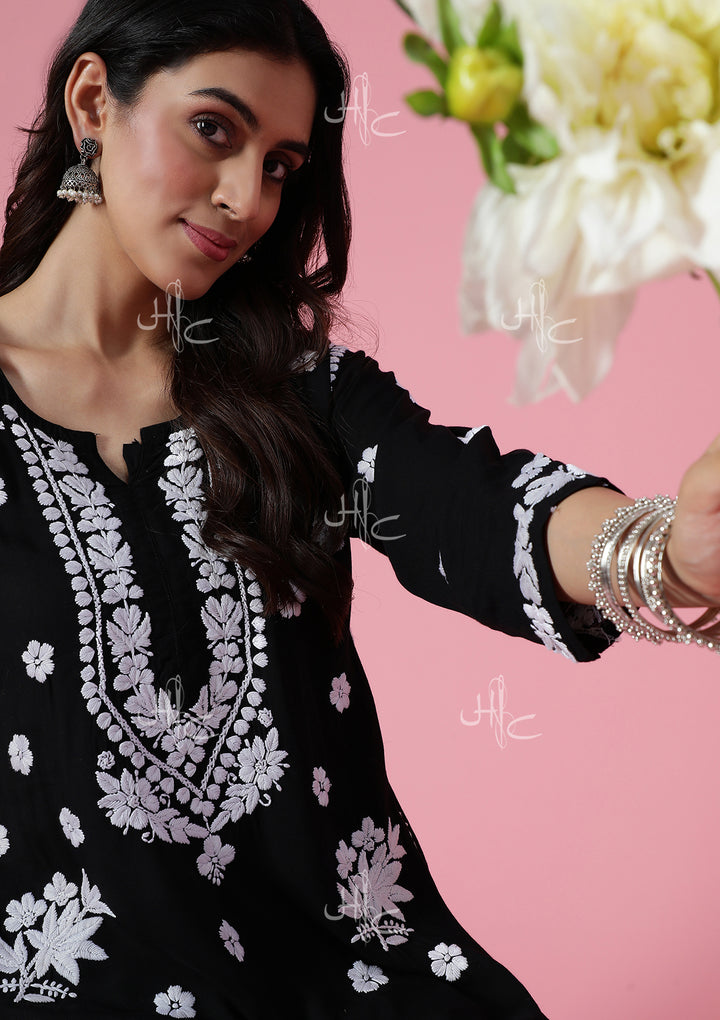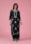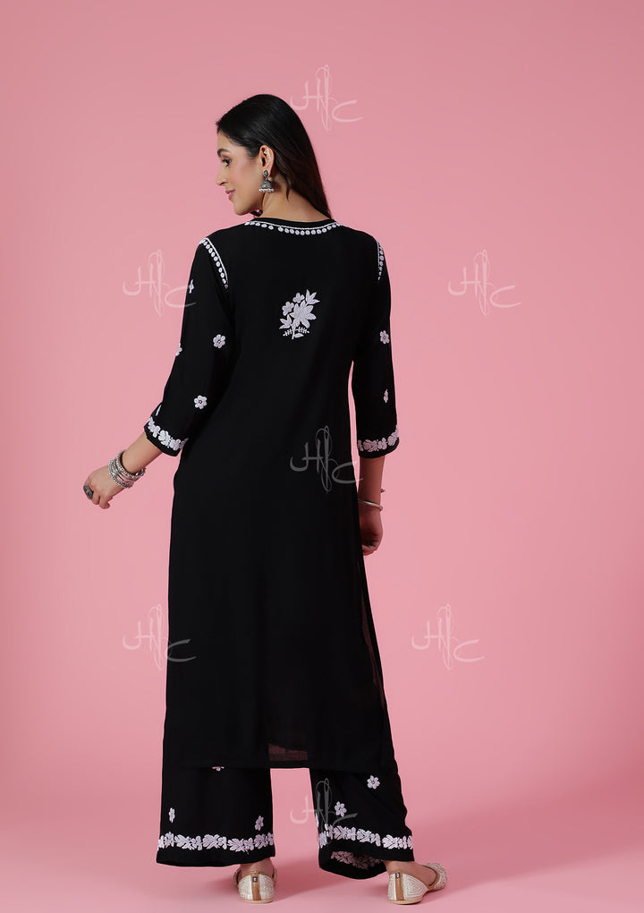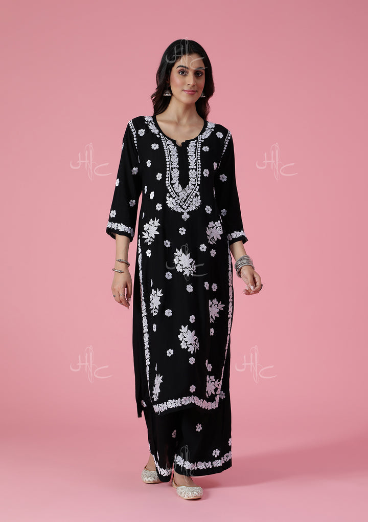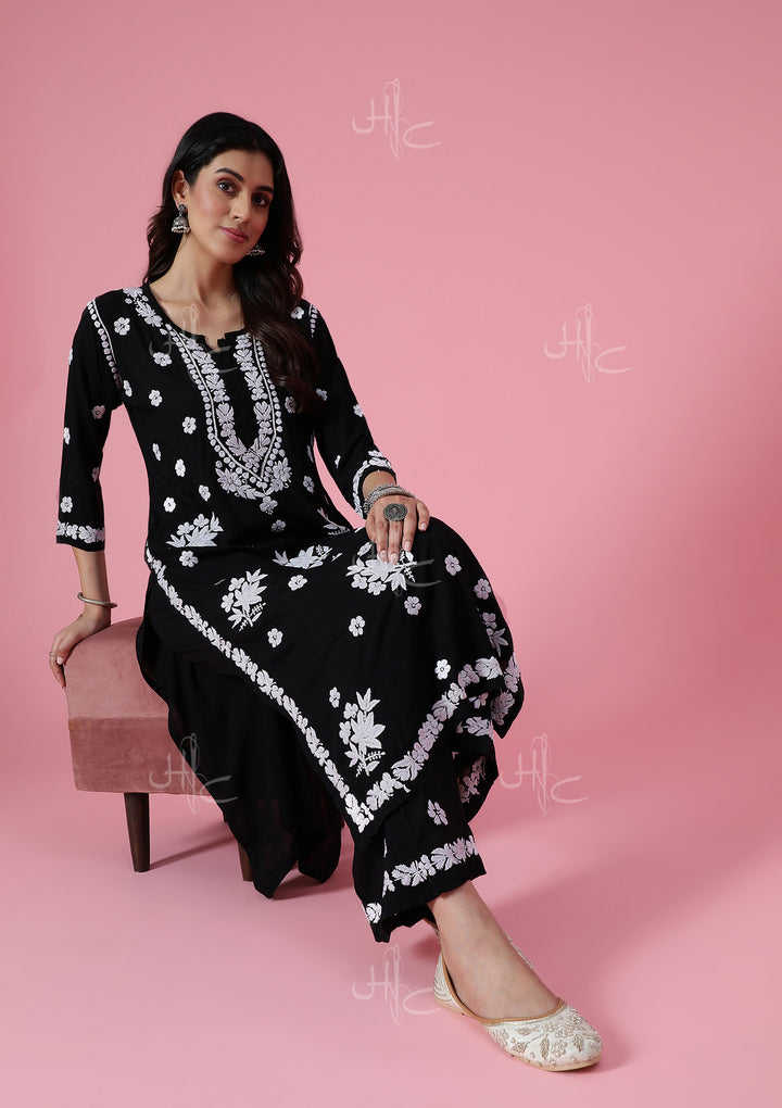 HOC Modal Chikankari Solid Women's 2 PC Long Kurta Set - Black