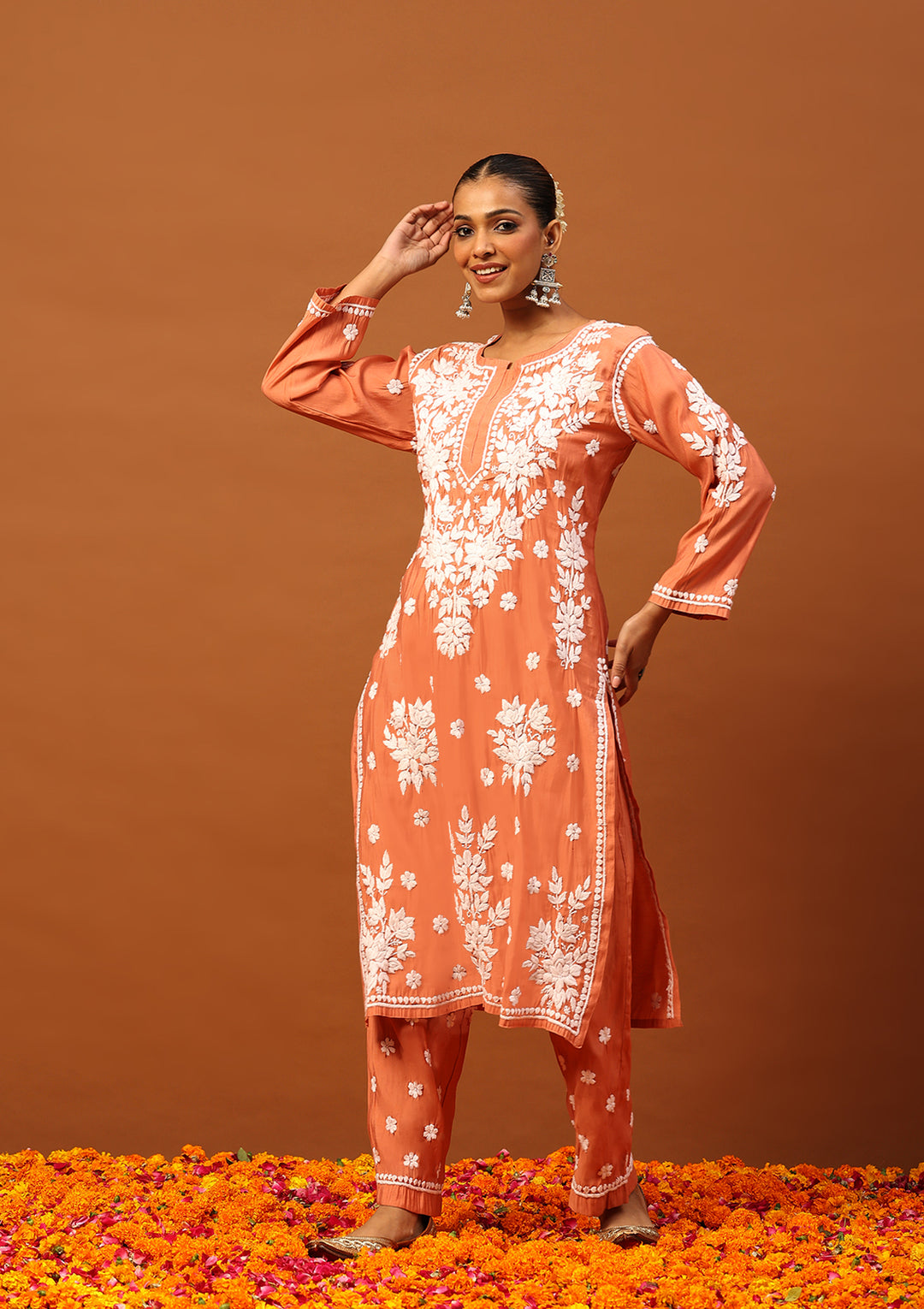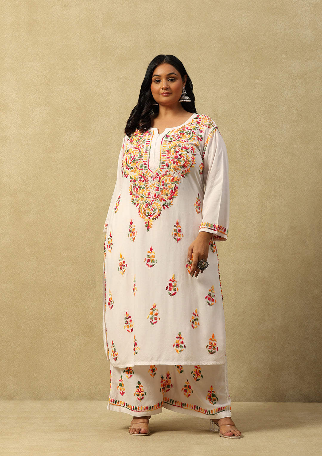 HOC Irha Chikankari Cotton Straight Kurta Set