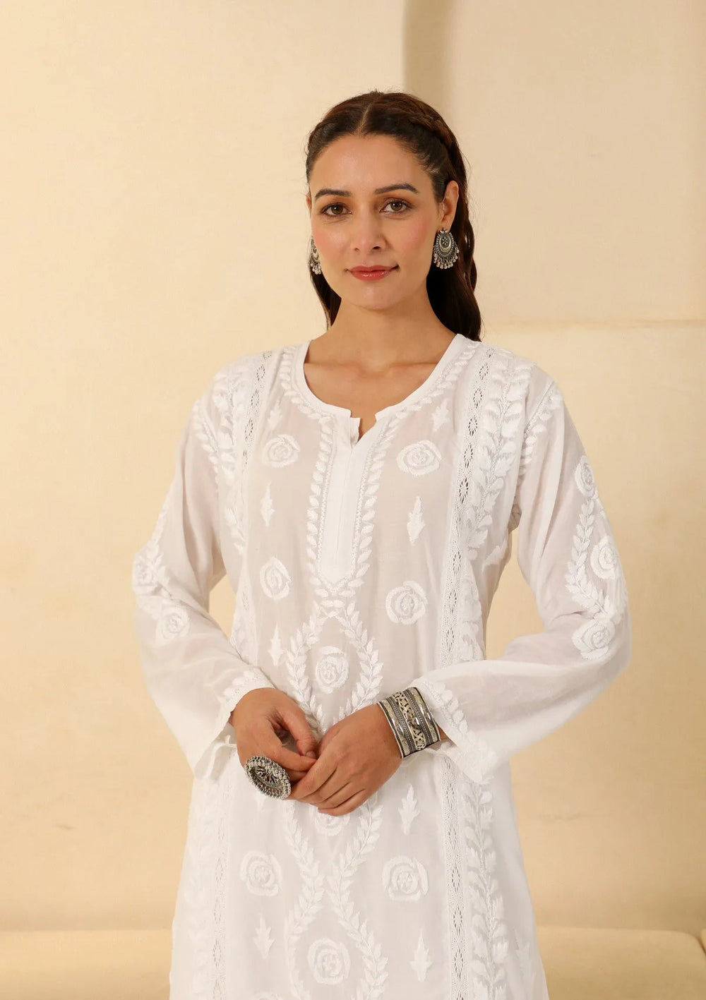 HOC Tamara Mulmul Chikankari Printed Women's Straight Kurta - Navy Blue