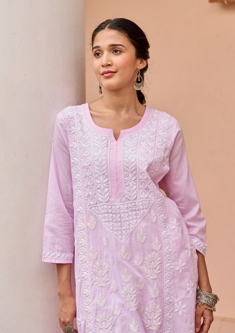 HOC Zainab Chikankari Mulmul Printed Straight Kurta -Grey
