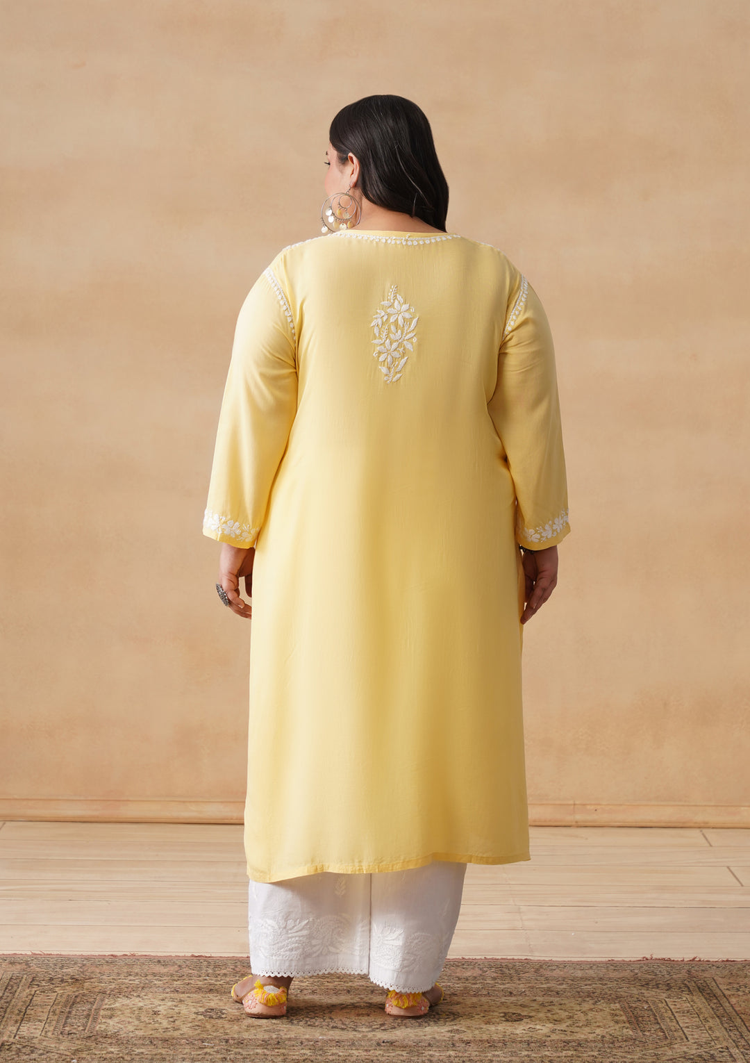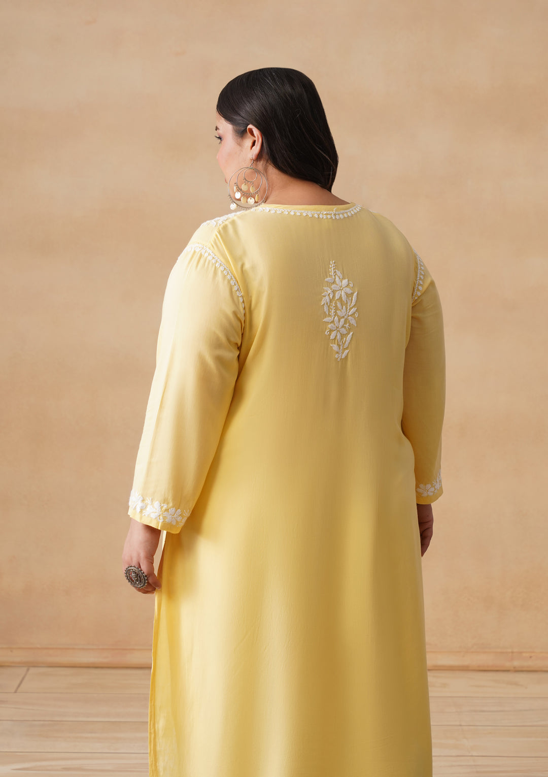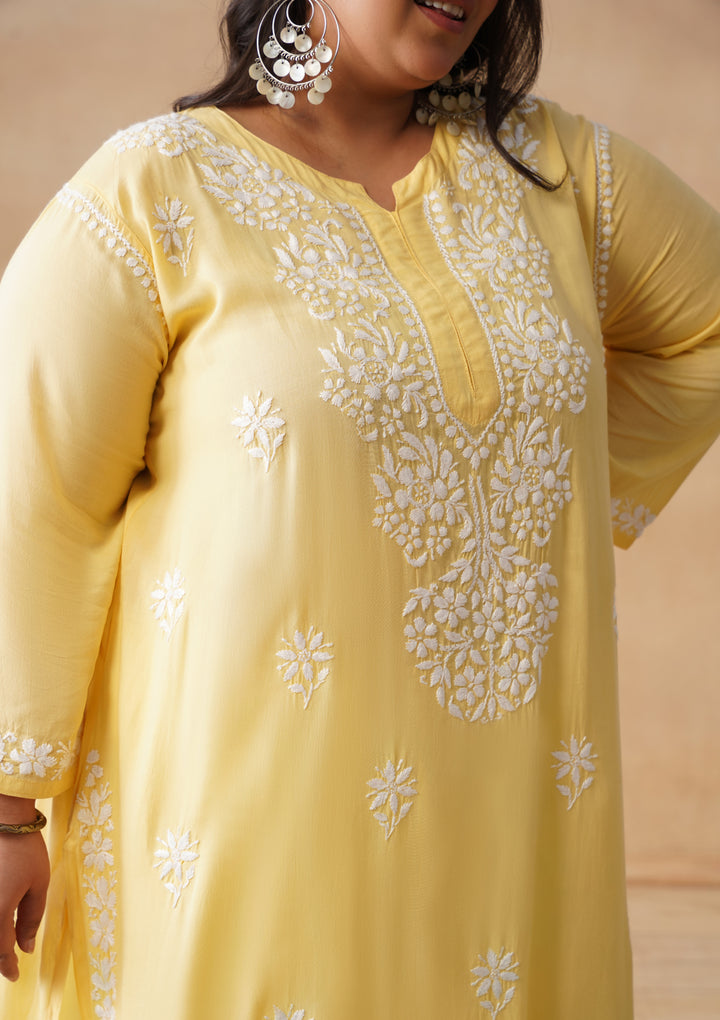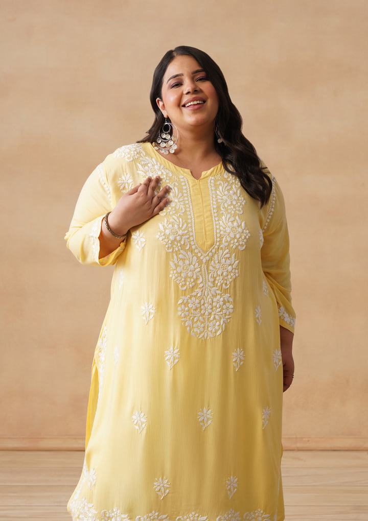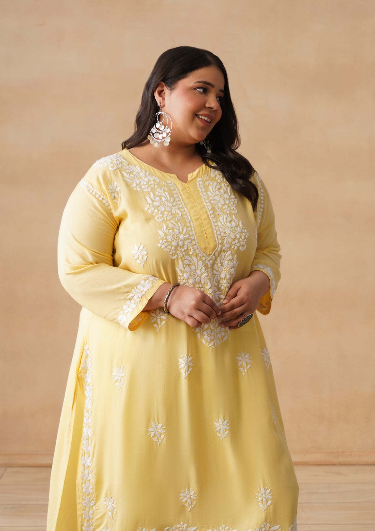 HOC Modal Chikankari Solid Women's Long Kurta - Yellow