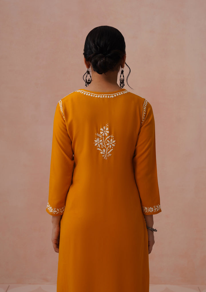 HOC Rayon Chikankari Solid Women's Long Kurta - Mustard