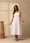 HOC Cotton Slub Chikankari Solid Women's Long Dress - White