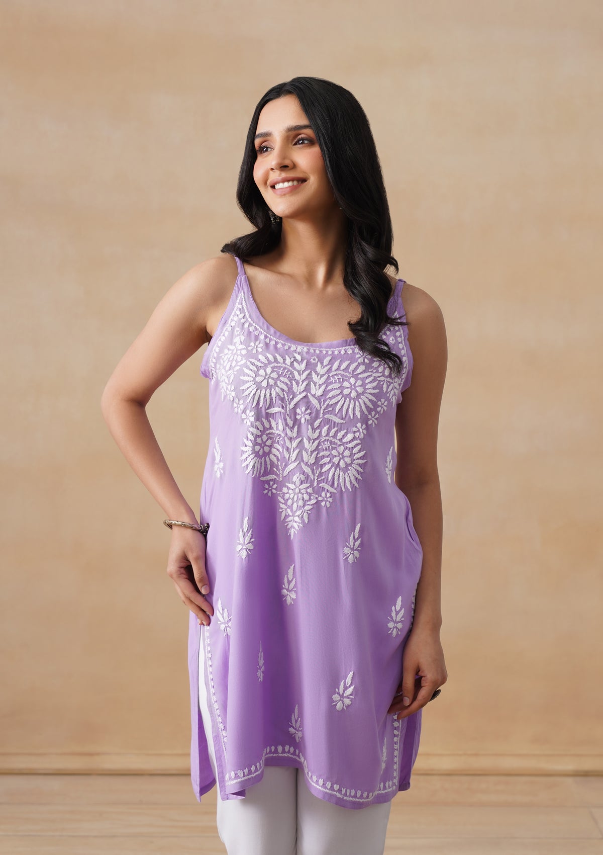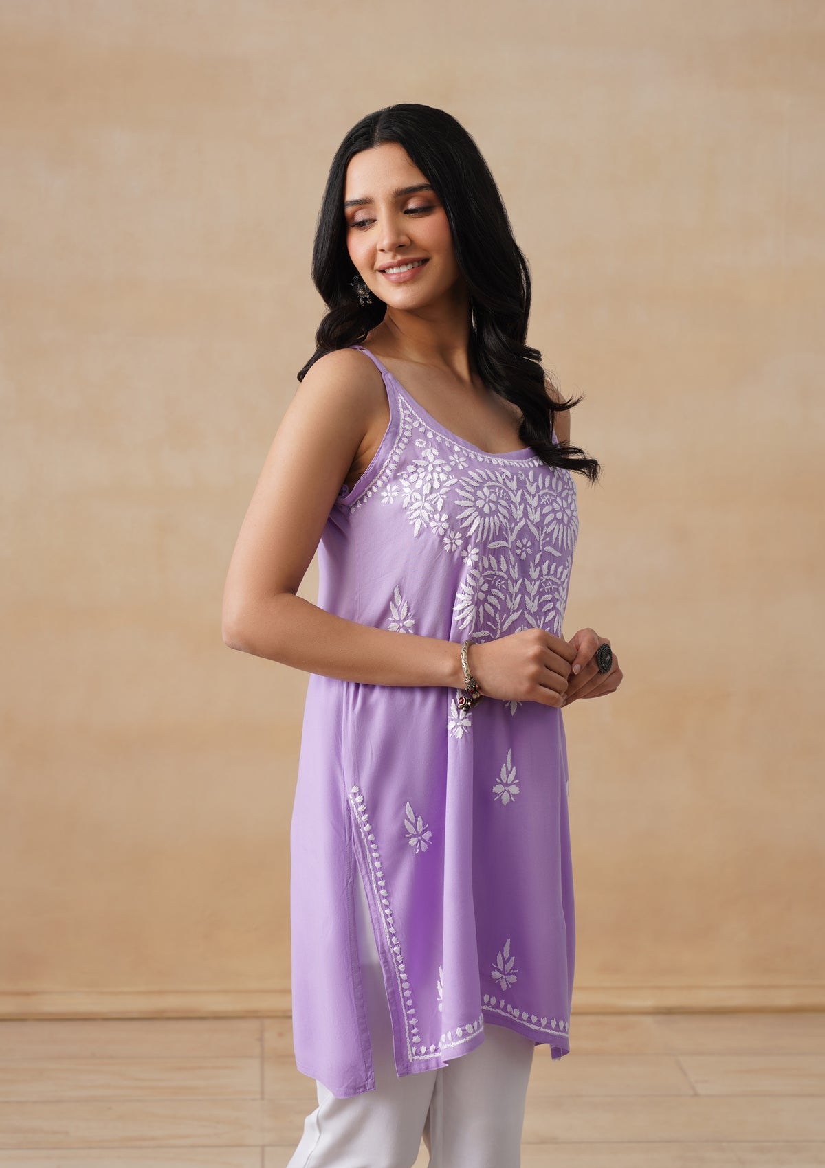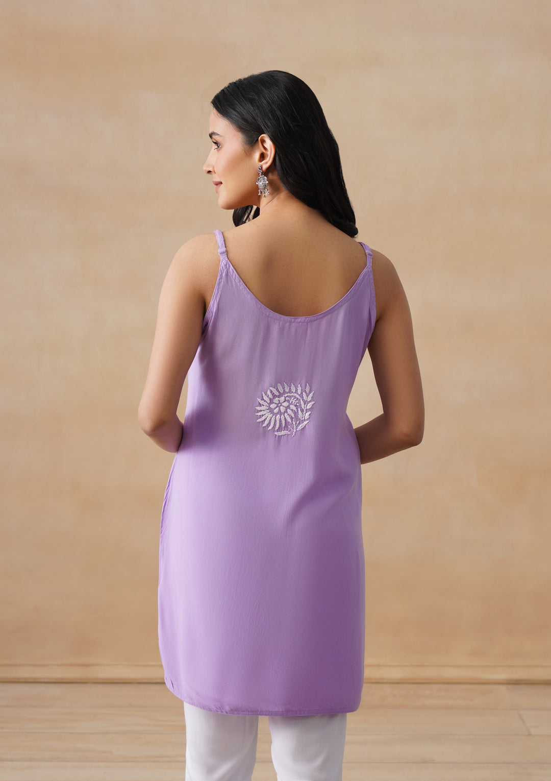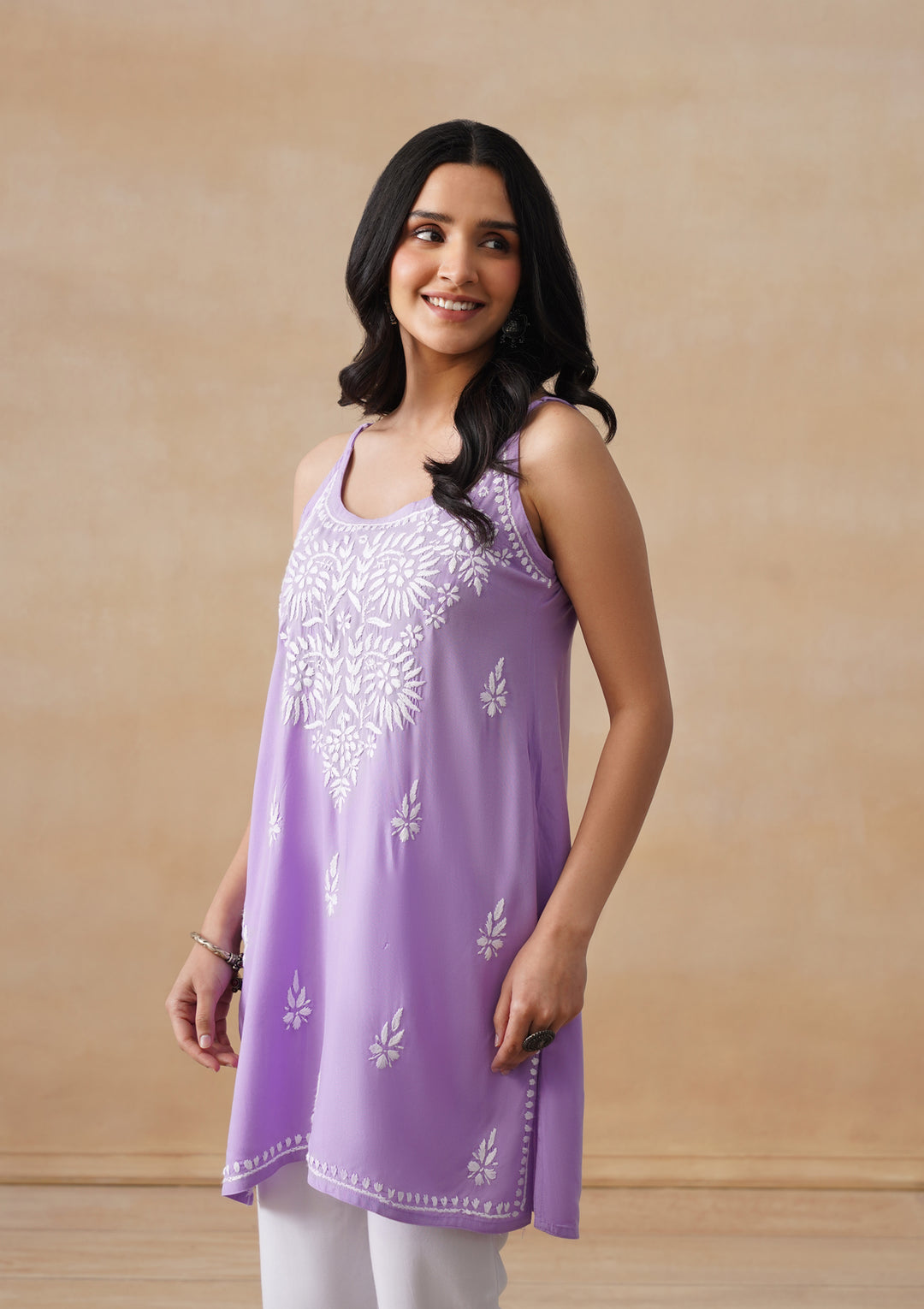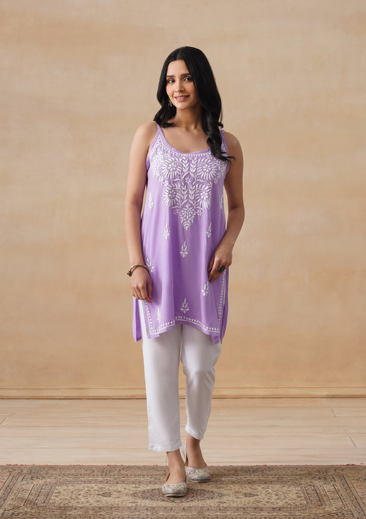 HOC Rayon Chikankari Solid Women's Short Kurta - Lavender