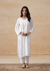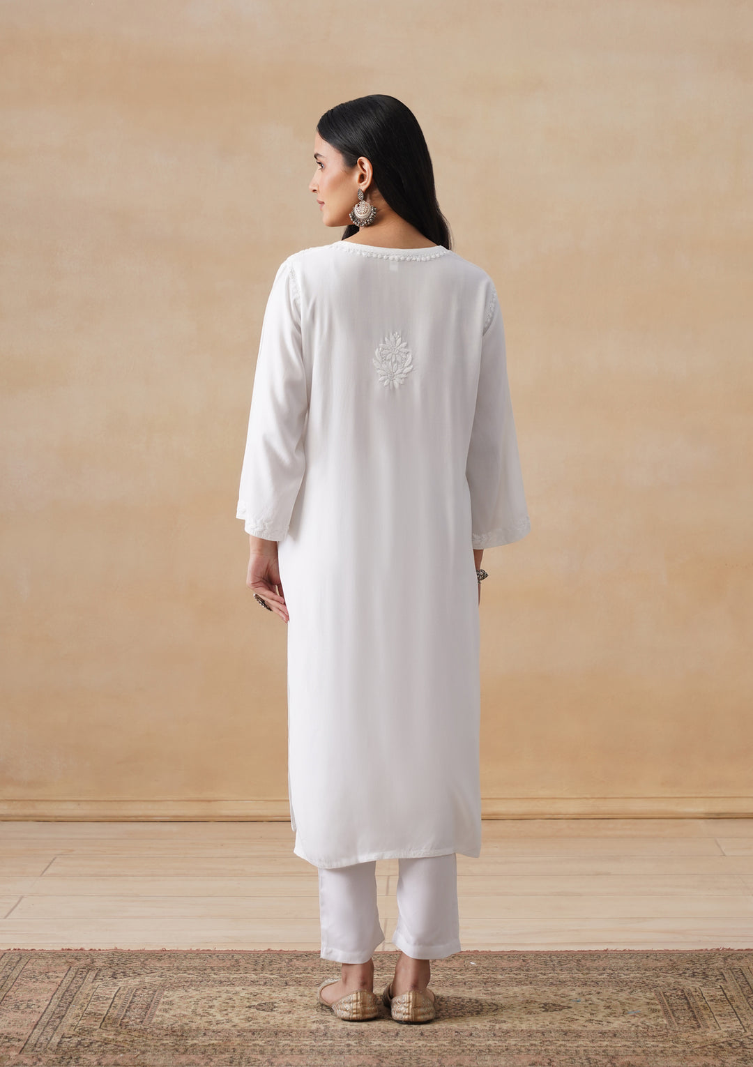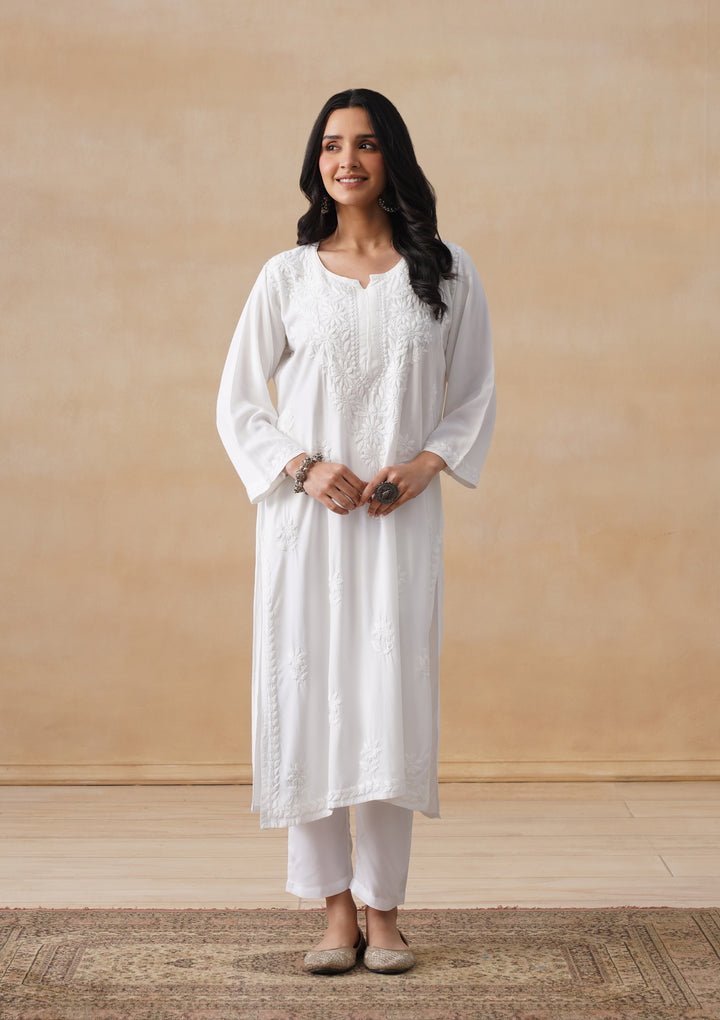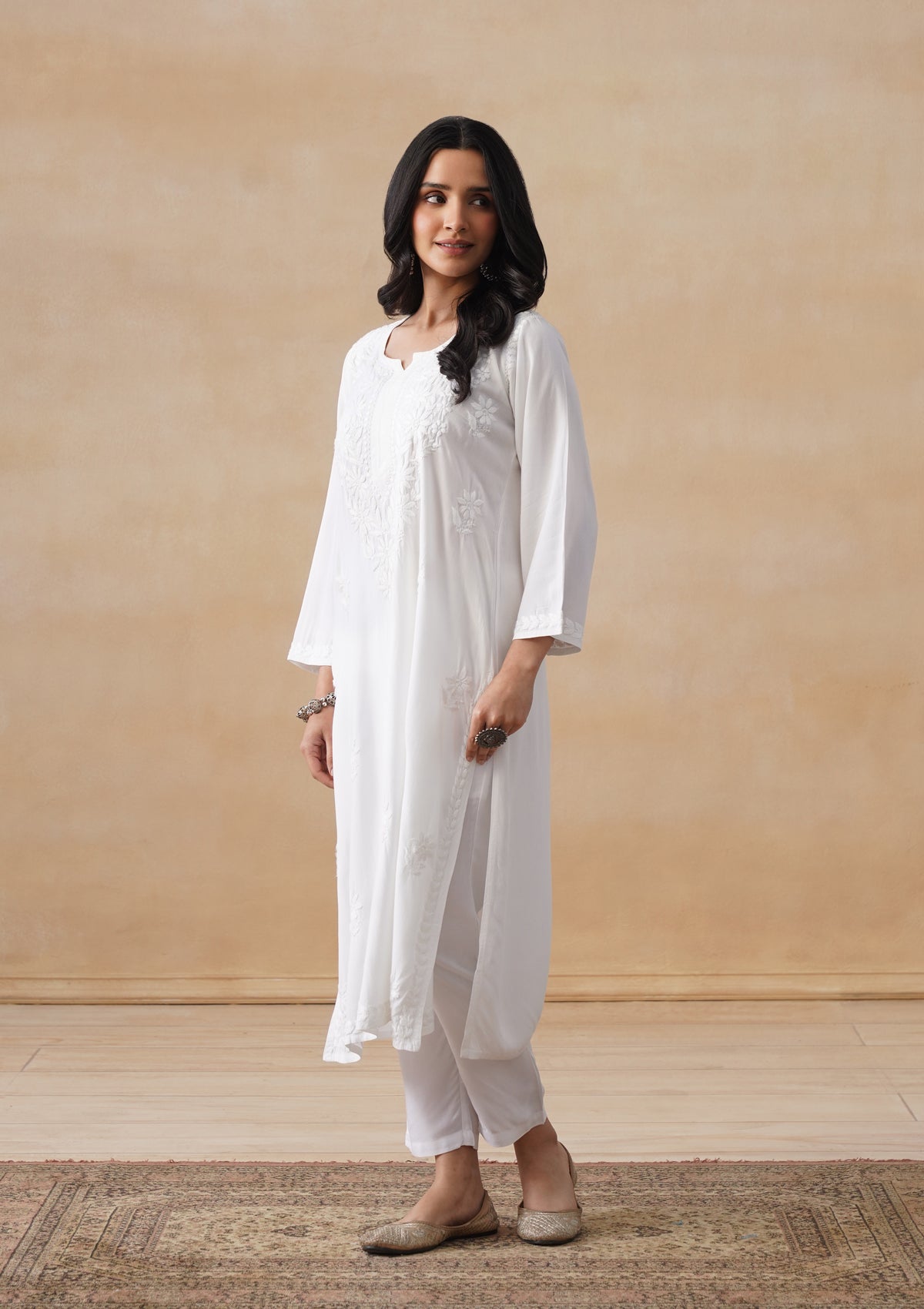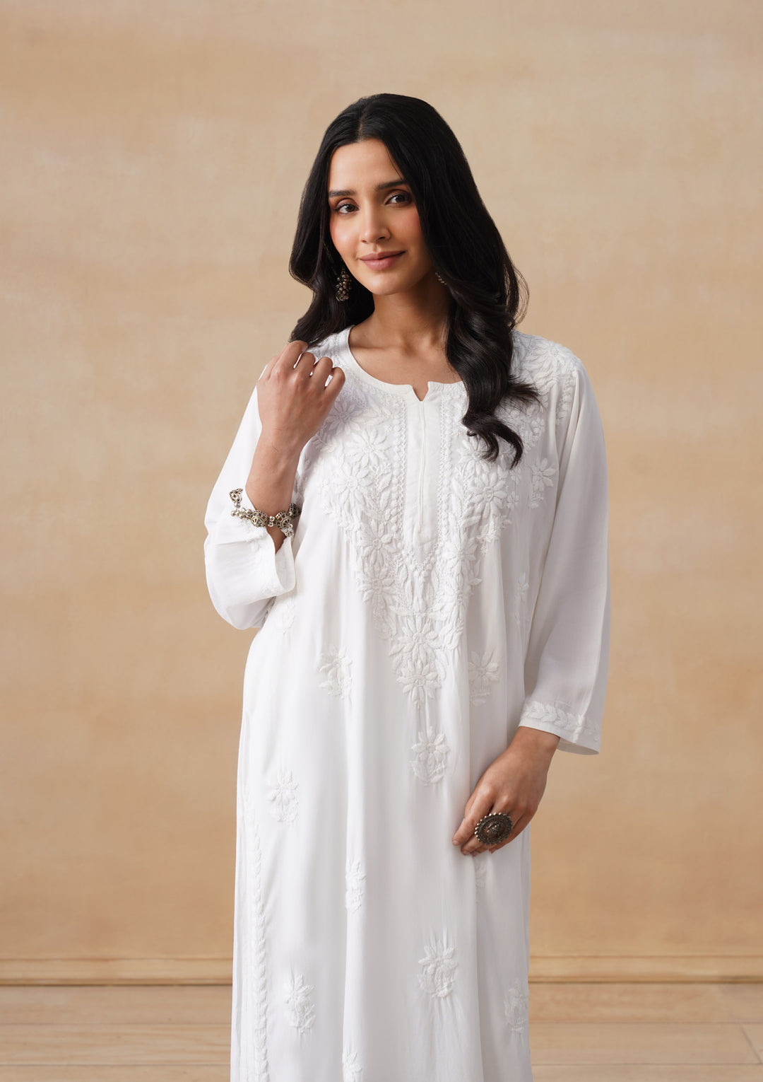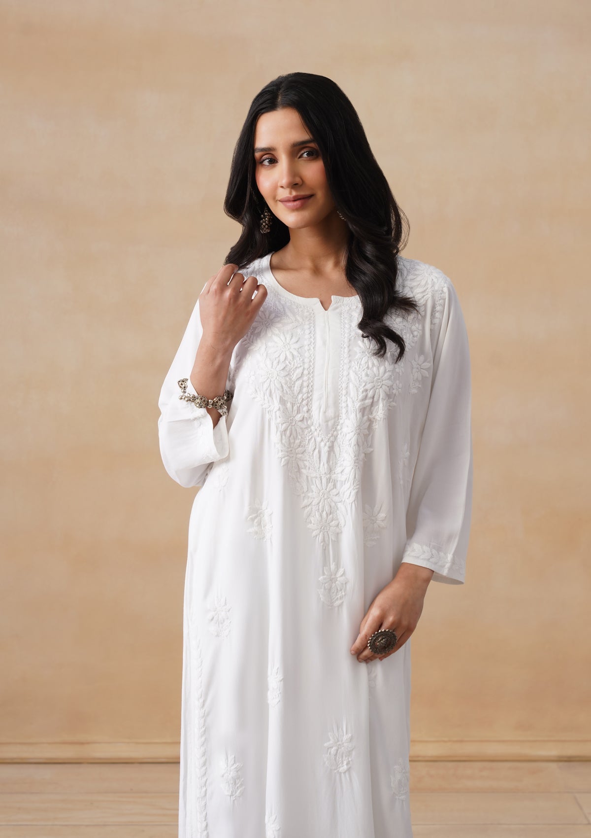HOC Rayon Chikankari Solid Women's Long Kurta - White