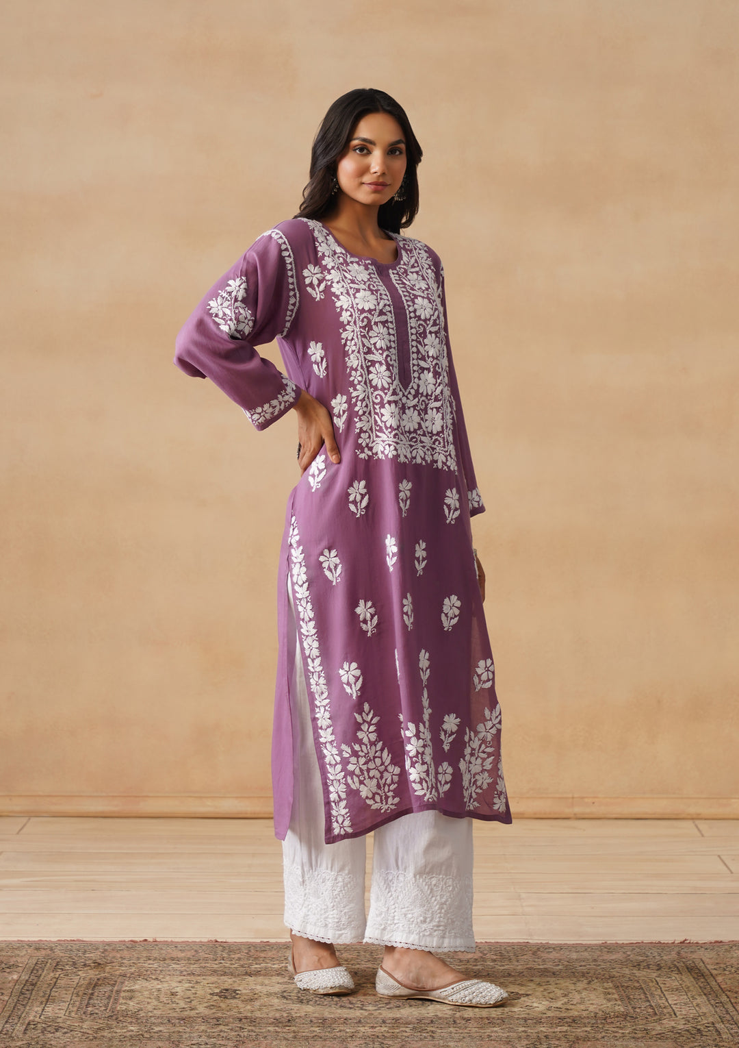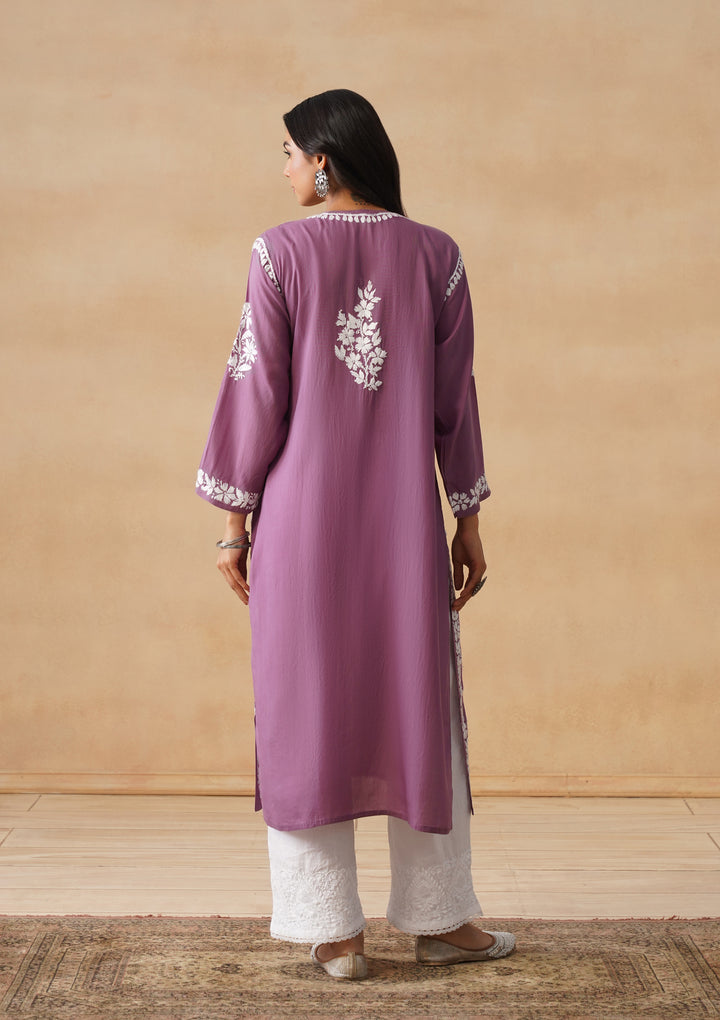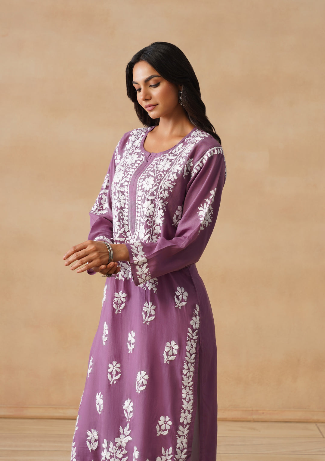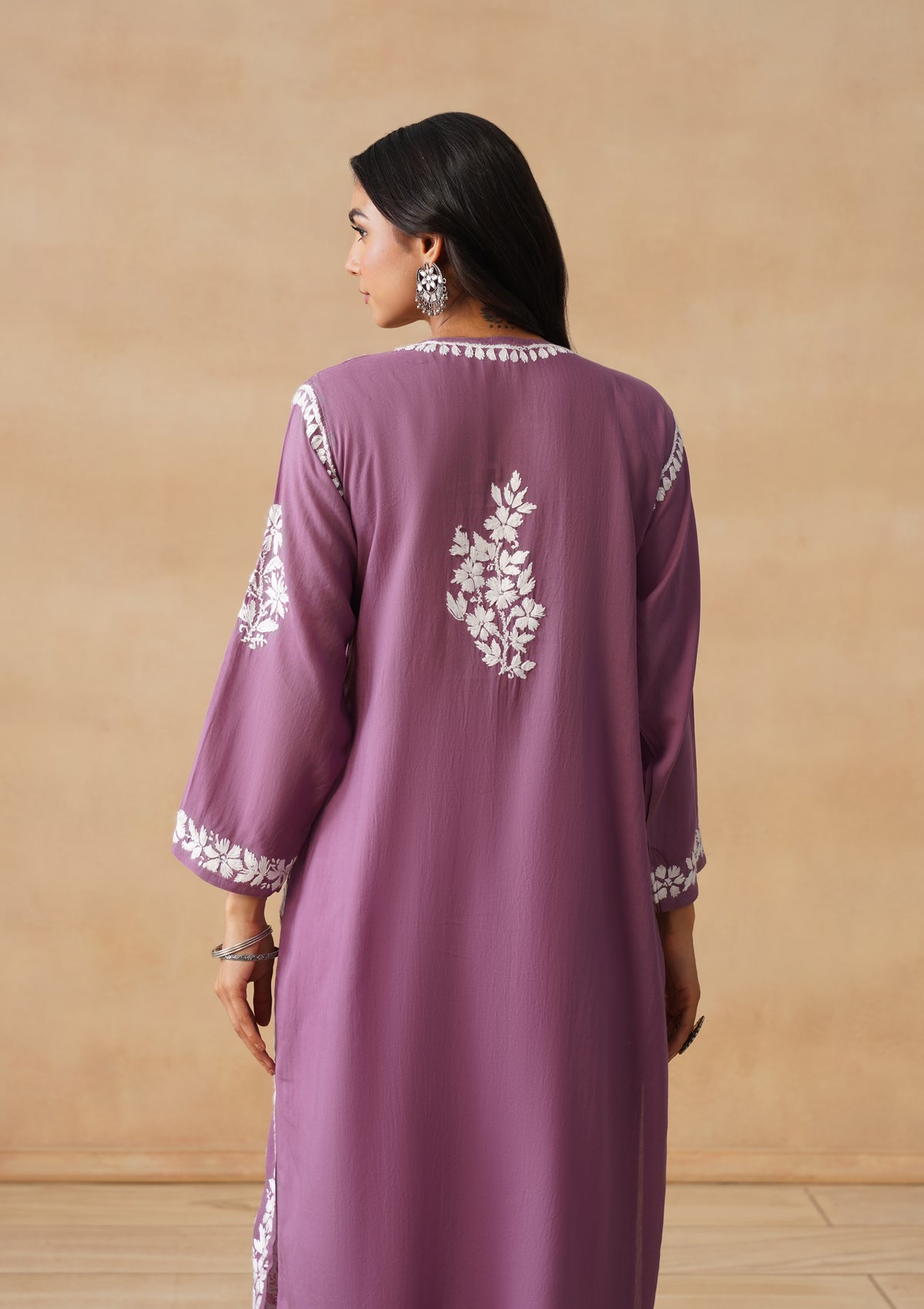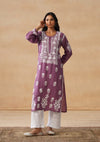 HOC Modal Chikankari Solid Women's Long Kurta - Mauve