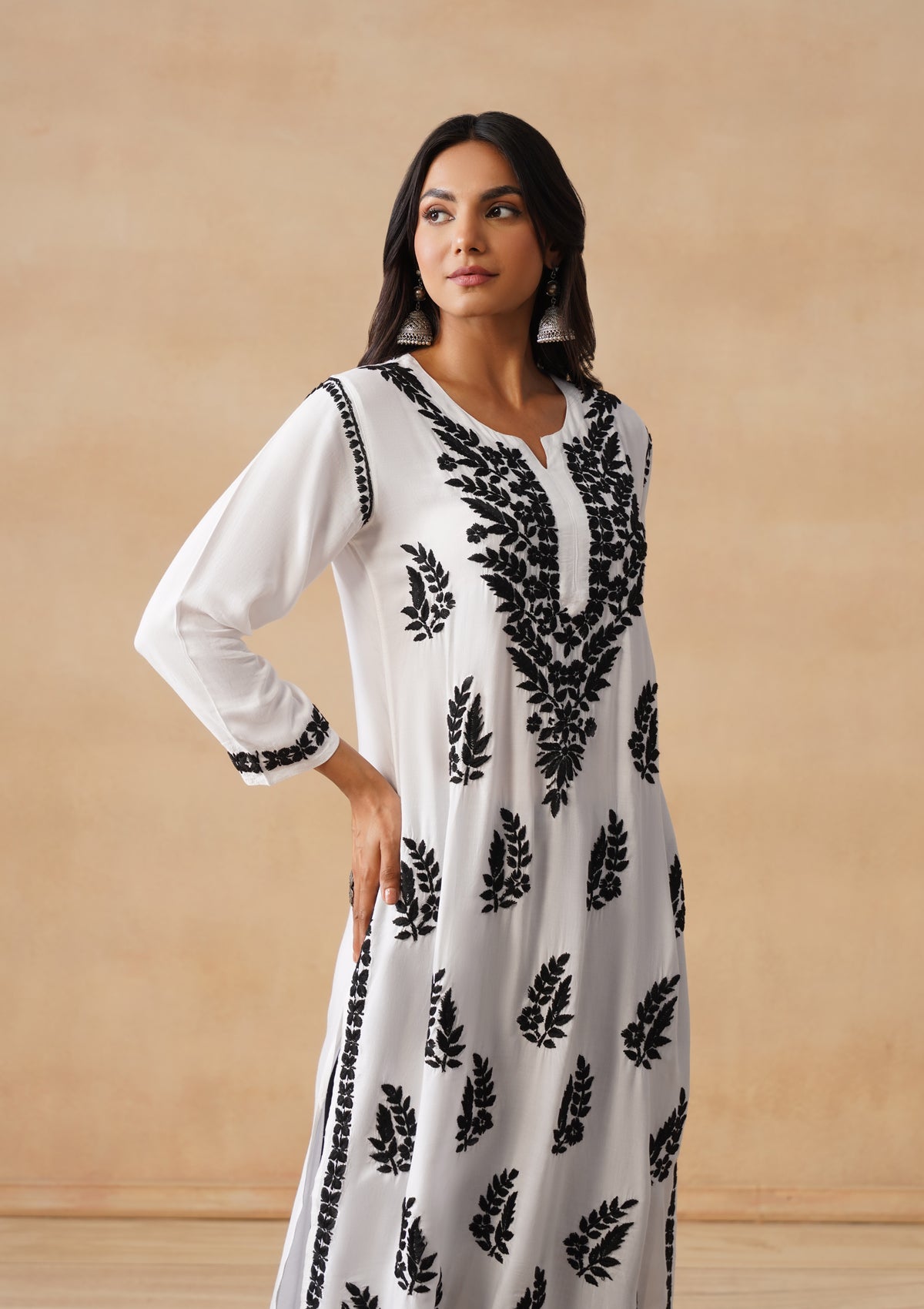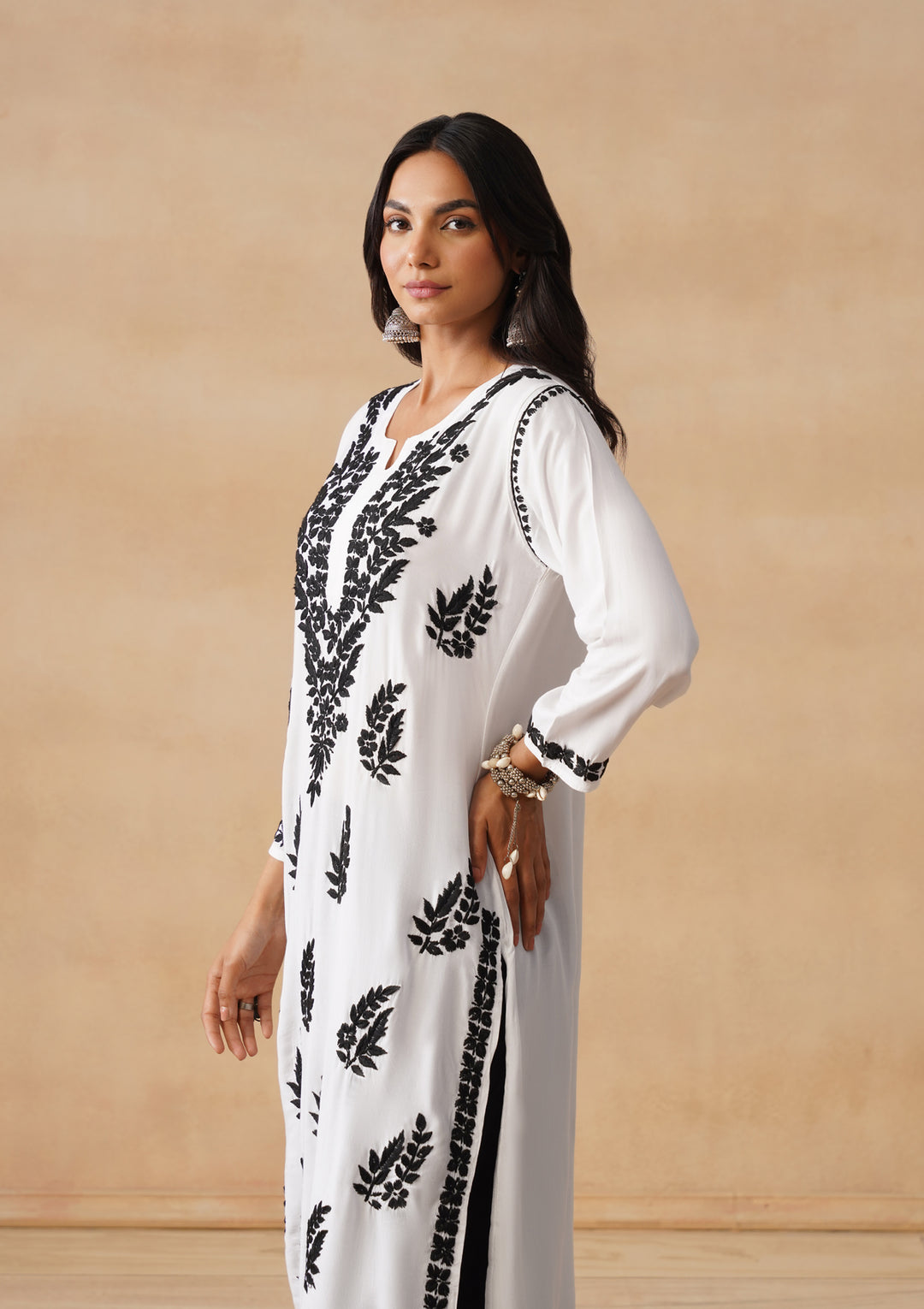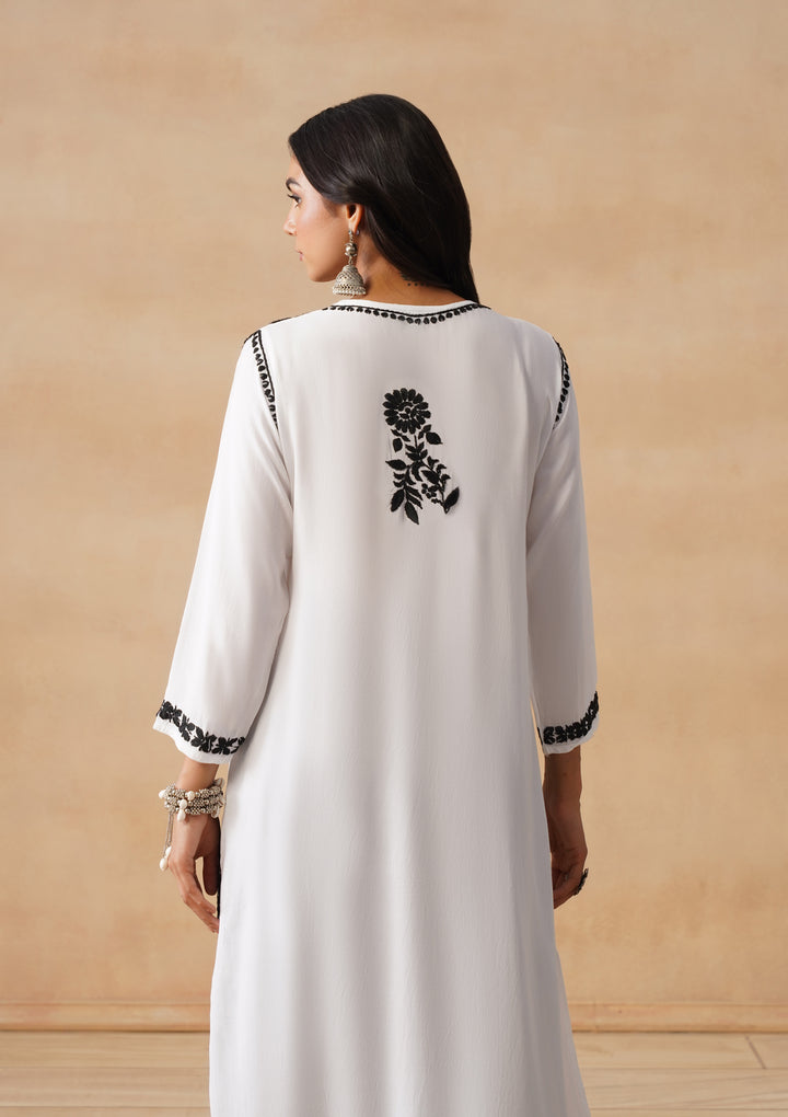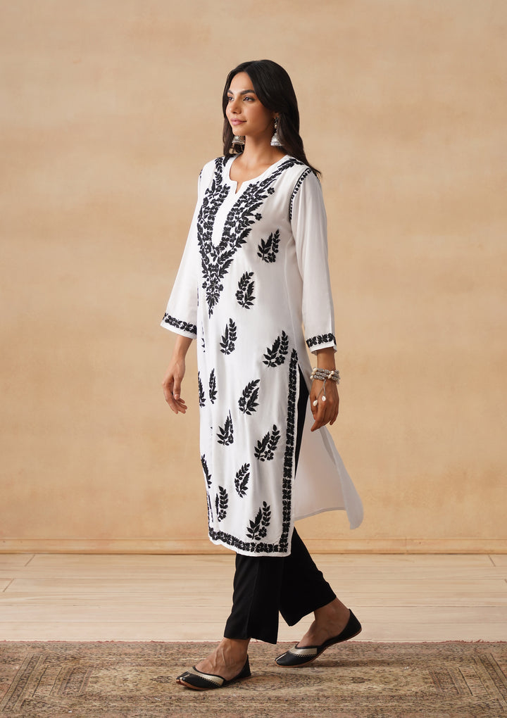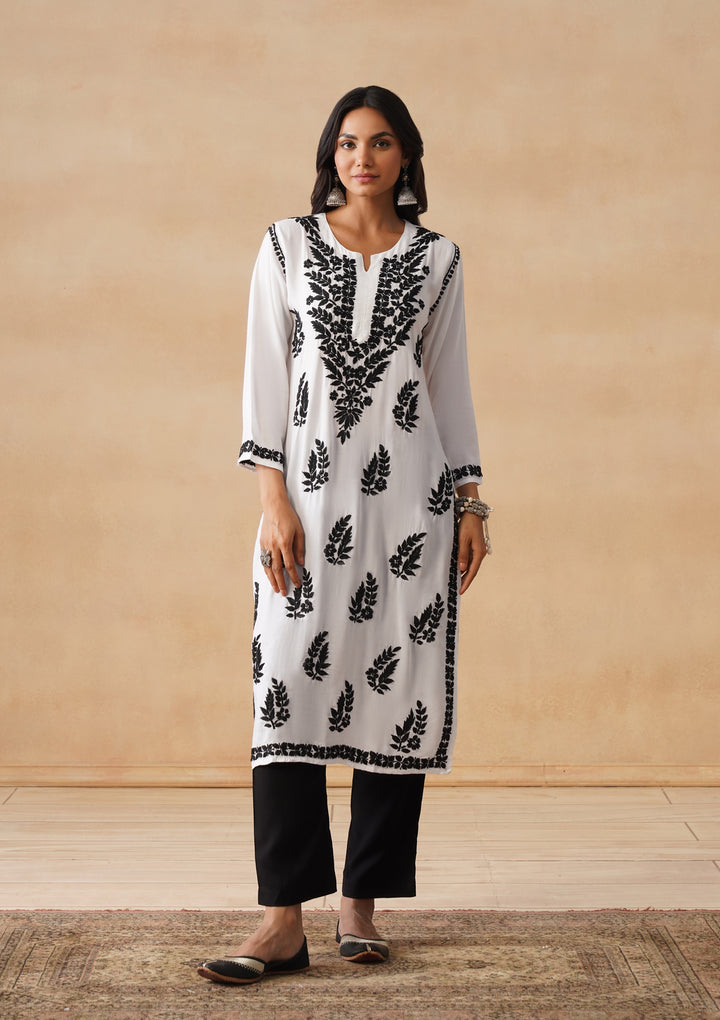 HOC Modal Chikankari Solid Women's Long Kurta - White