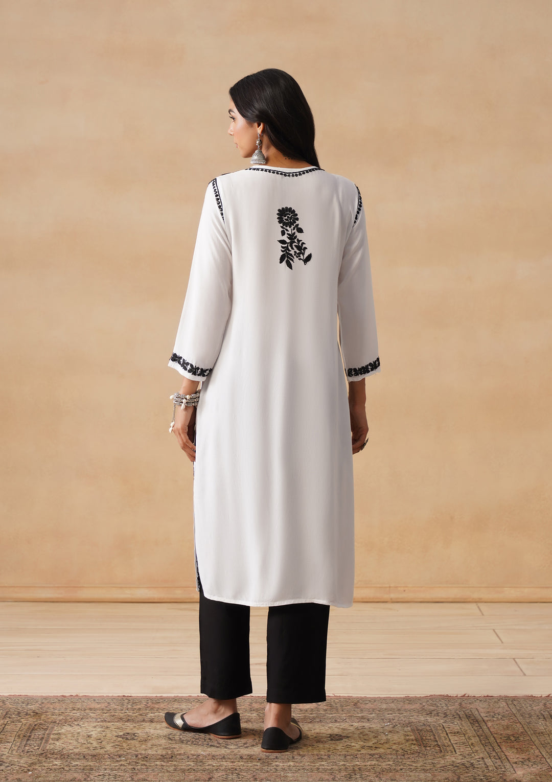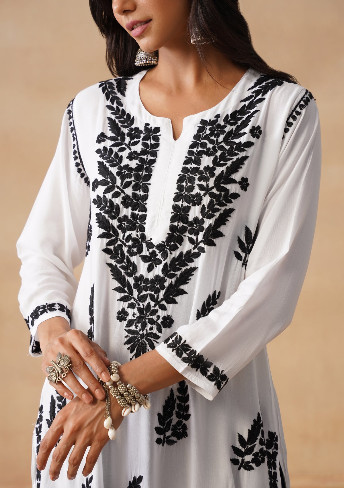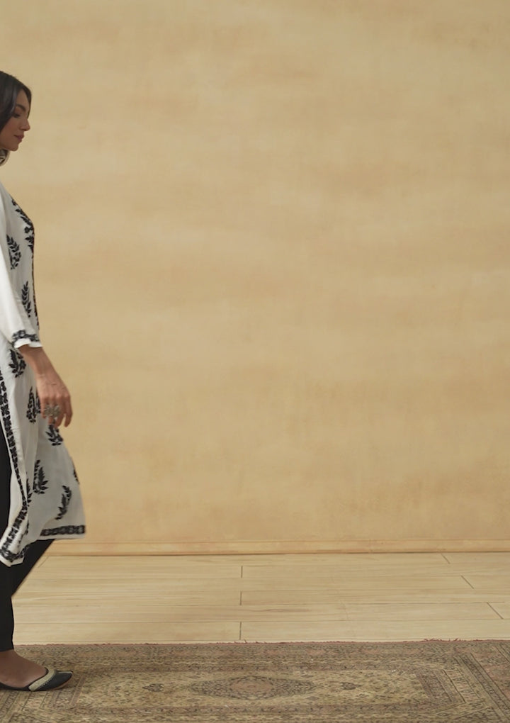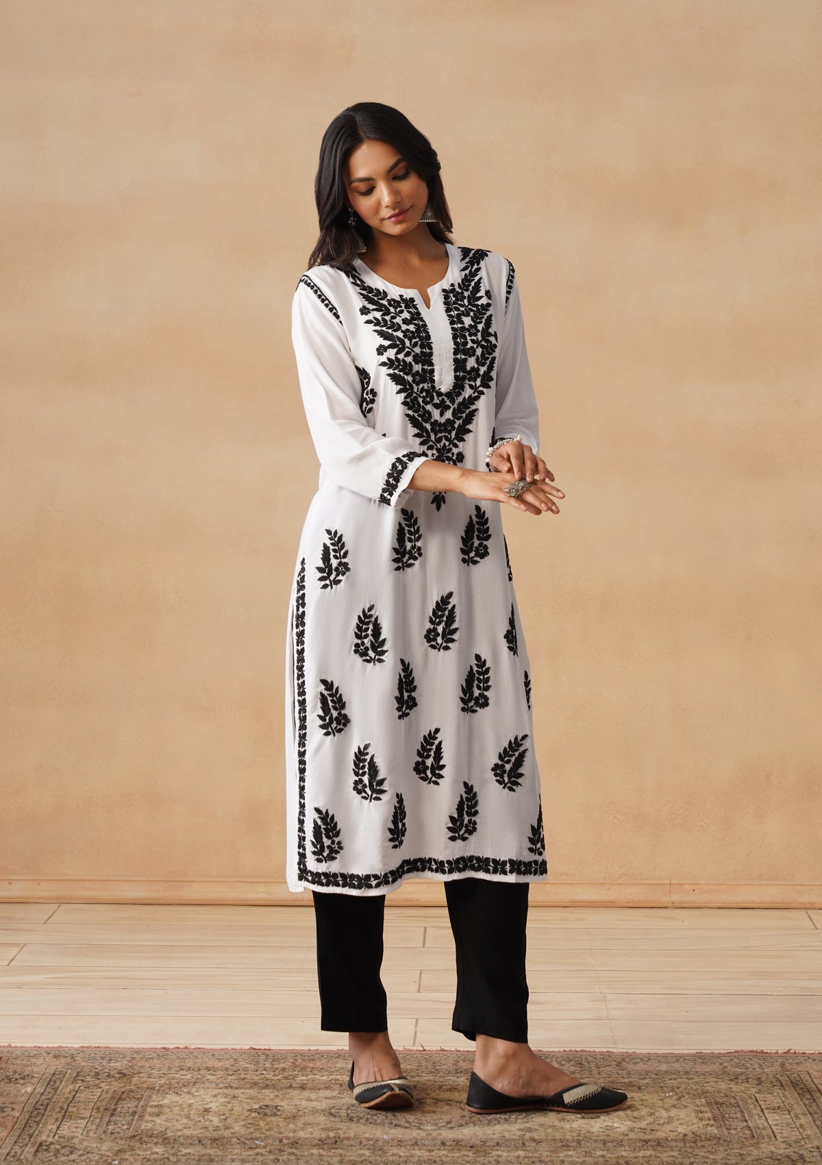 HOC Modal Chikankari Solid Women's Long Kurta - White