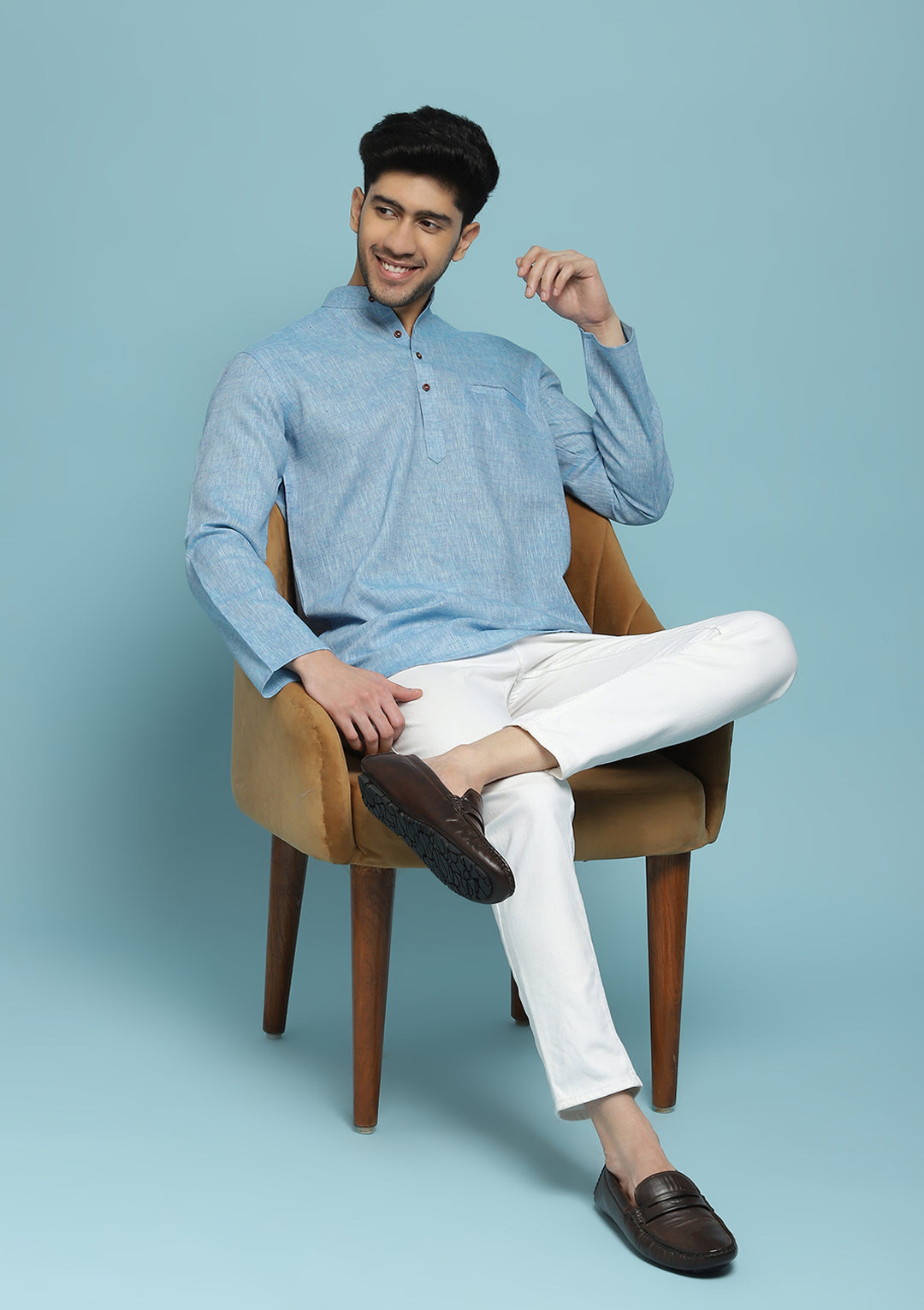 Cotton or linen blend fabrics are the best when it comes to short kurtas for men.