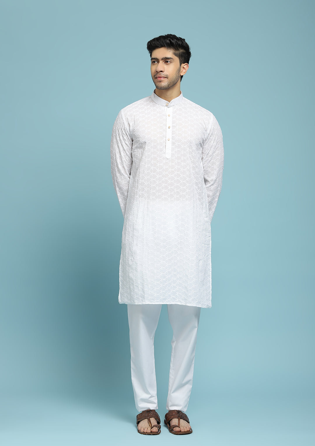 HOC Shaan Chikankari Cotton Straight Men's Kurta