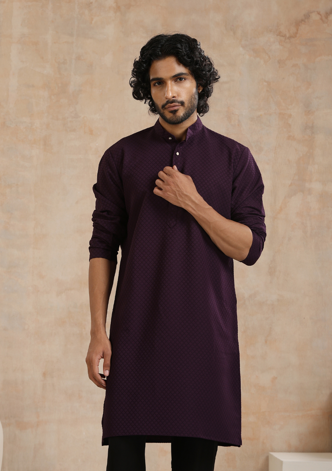 HOC Dobby Textured Solid Men's Long Kurta - Maroon