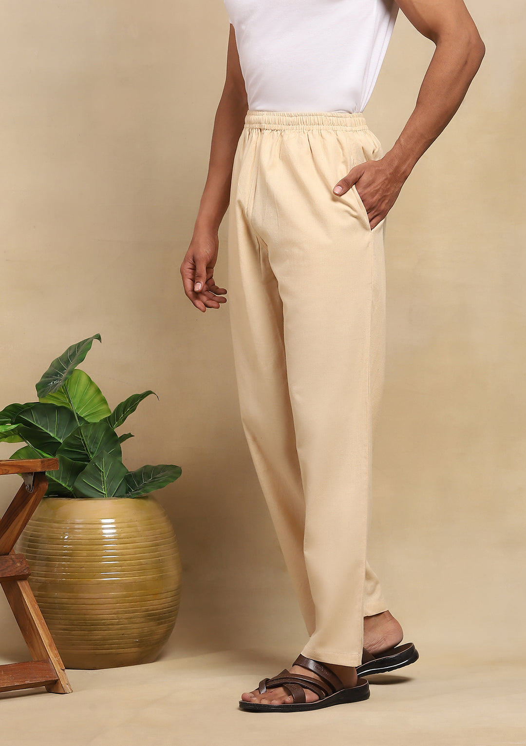 HOC Poly Silk Zari Embroidered Solid Men's Long Kurta- Beige