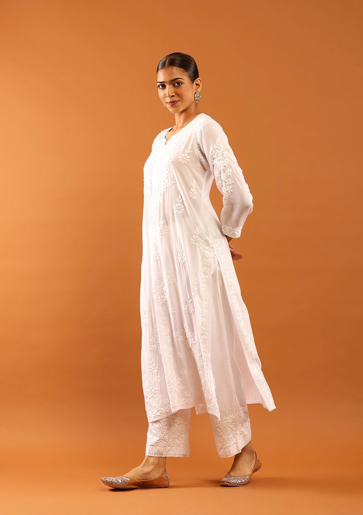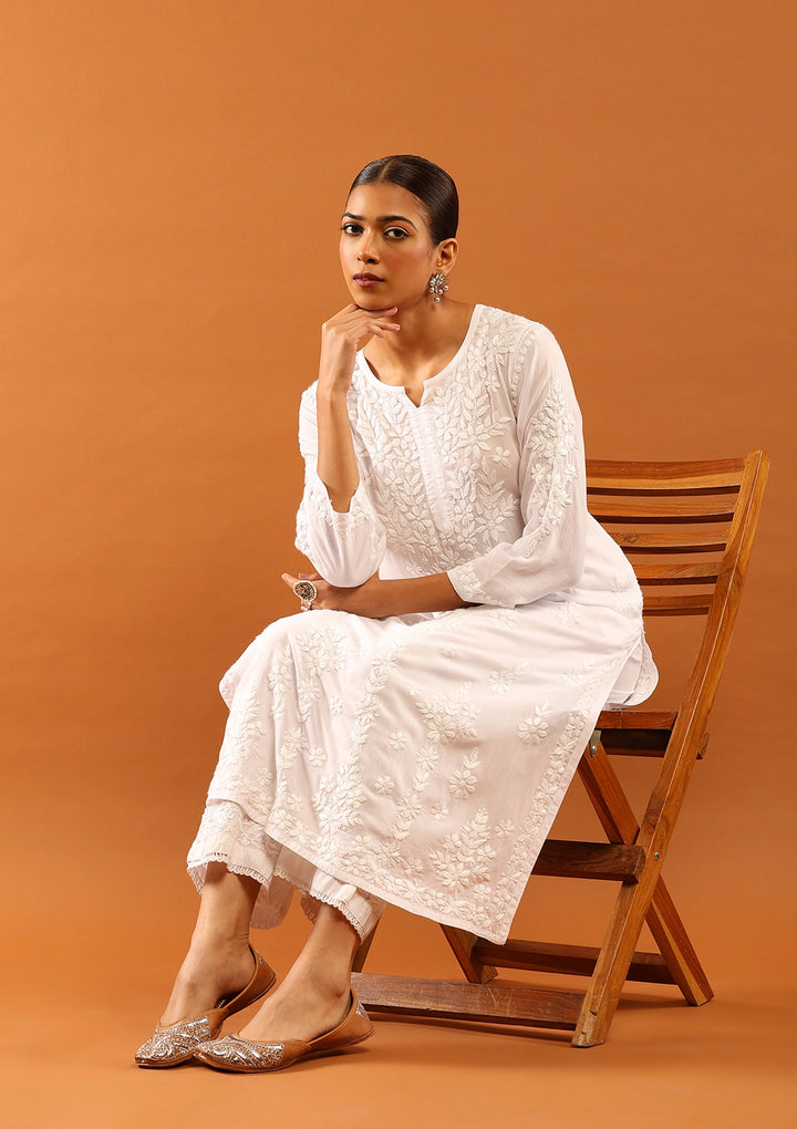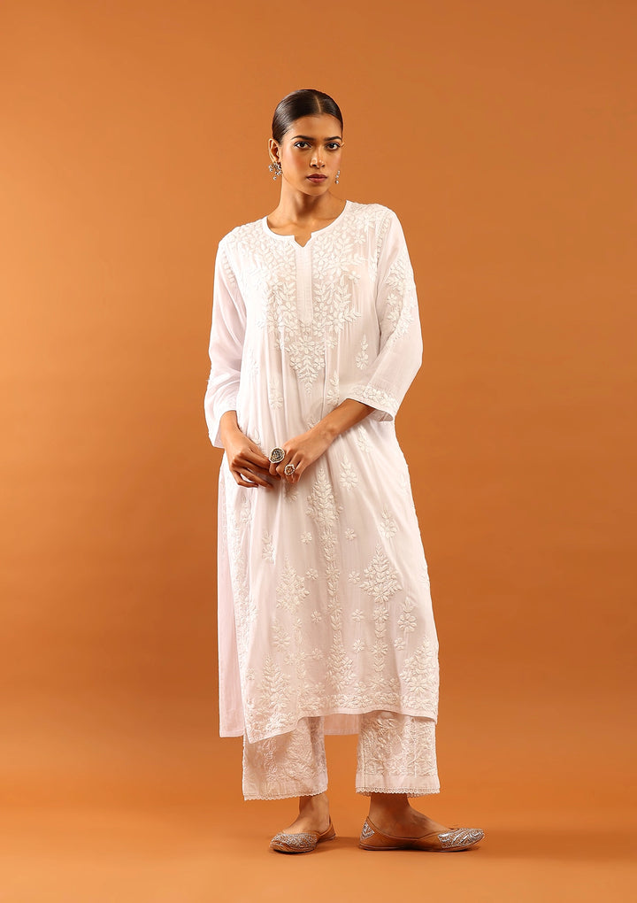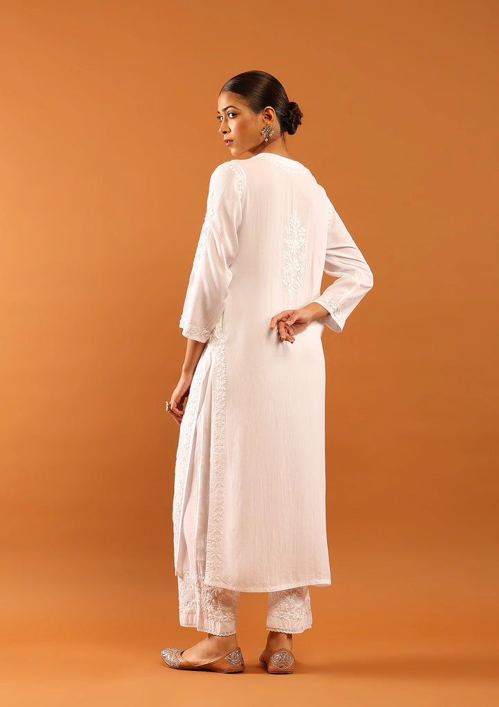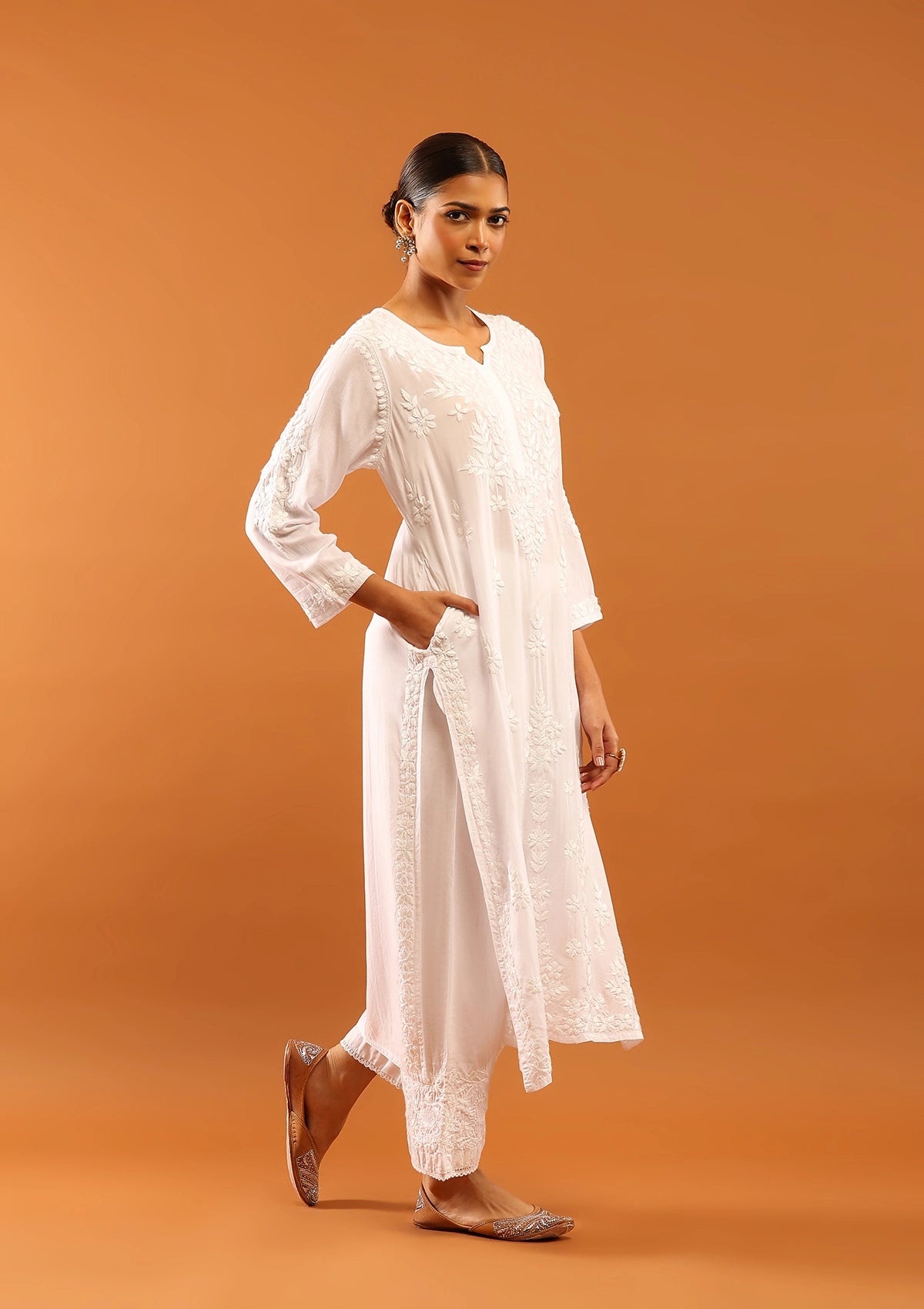 HOC Fenal Modal Chikankari Solid Women's Straight Kurta with Pockets - White